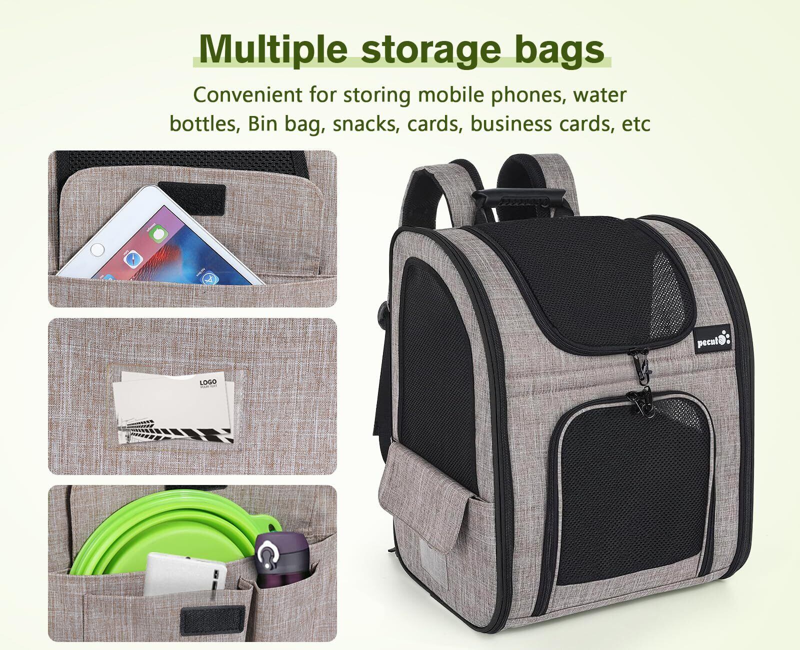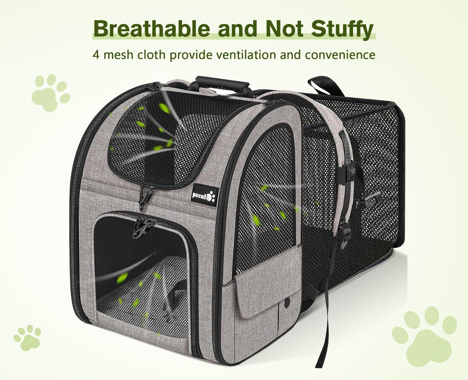 ペキュート Pecute ペット 猫 キャリーバッグ 猫用 犬用 リュック メッシュ窓 通気性 拡張可能 2WAY 猫 キャリー リュック 折り畳み お出かけ ドライブ 旅行 通院 防災 避難用 キャリー カーキ XL