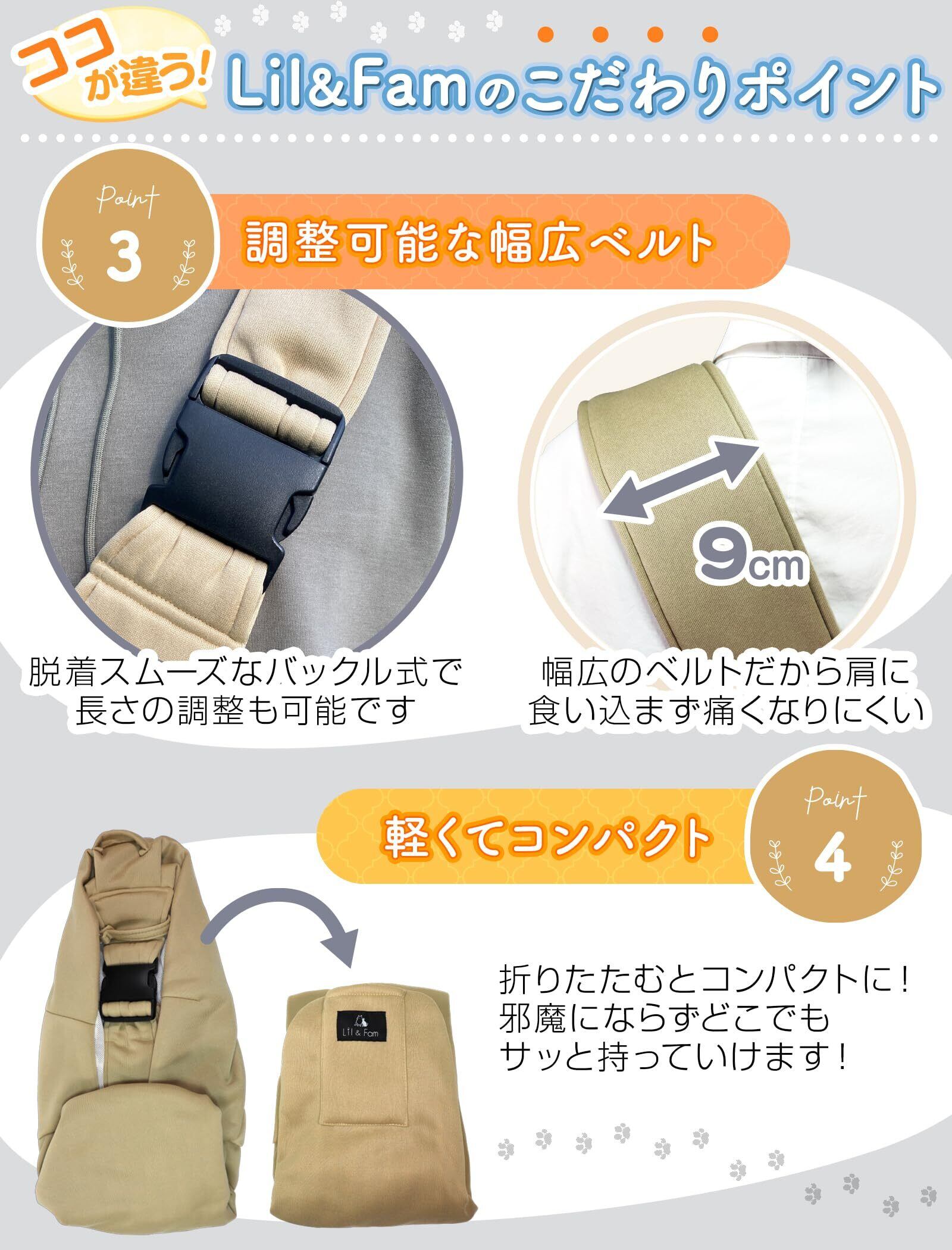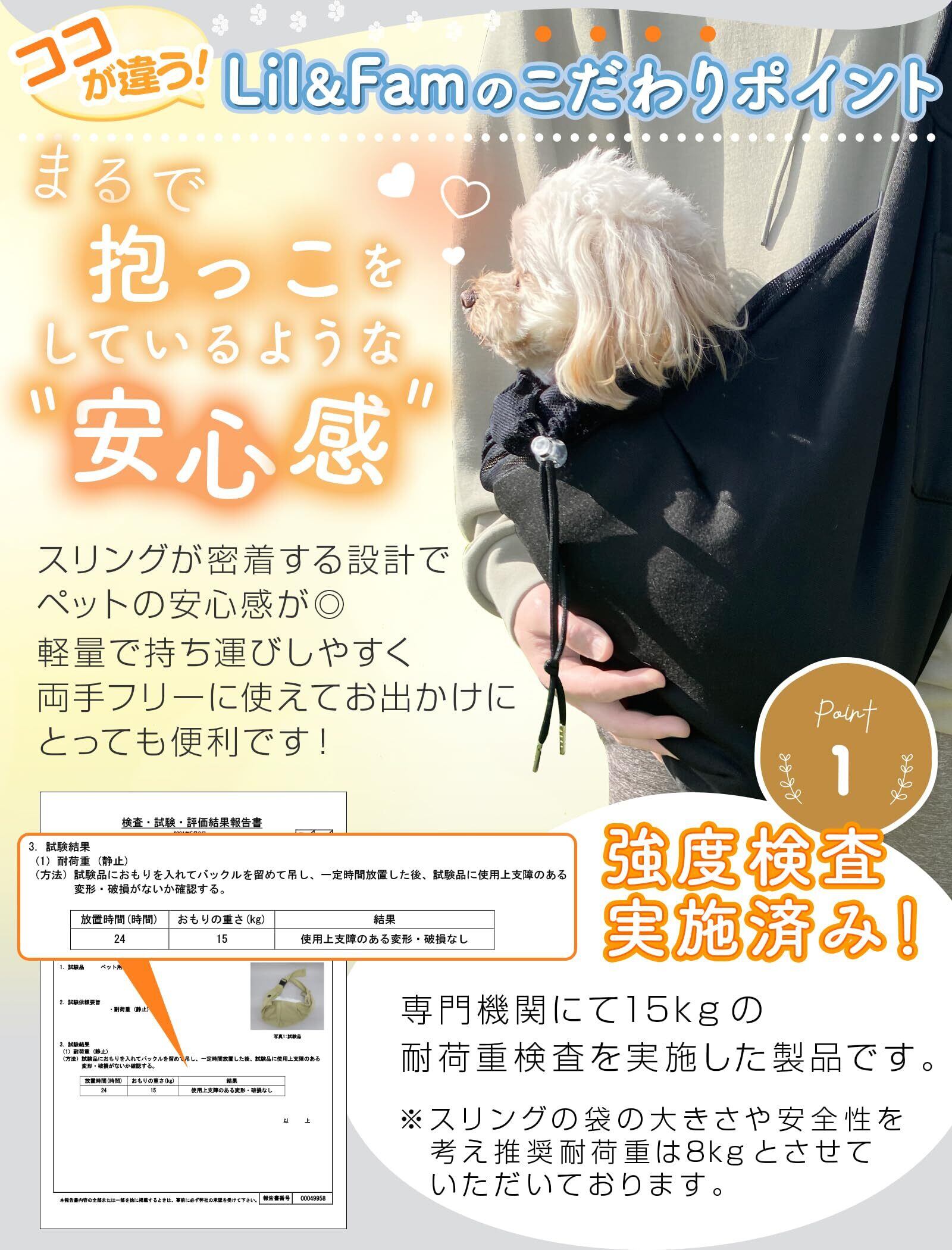 Lil&Fam 犬 抱っこ紐 ペットスリング キャリーバッグ ペットバッグ 飛び出し防止 メッシュネット付き 長さ調節可能 猫 キャリー (オフホワイト)
