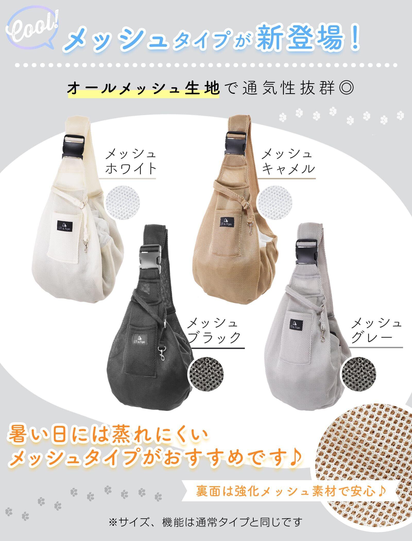 【新登場!通気性抜群のメッシュスリング】夏の蒸し暑い日のお出かけも快適。メッシュ生地のスリングは通気性がよく蒸れの心配はありません。暑い日や夏用として活躍するメッシュ スリングです。