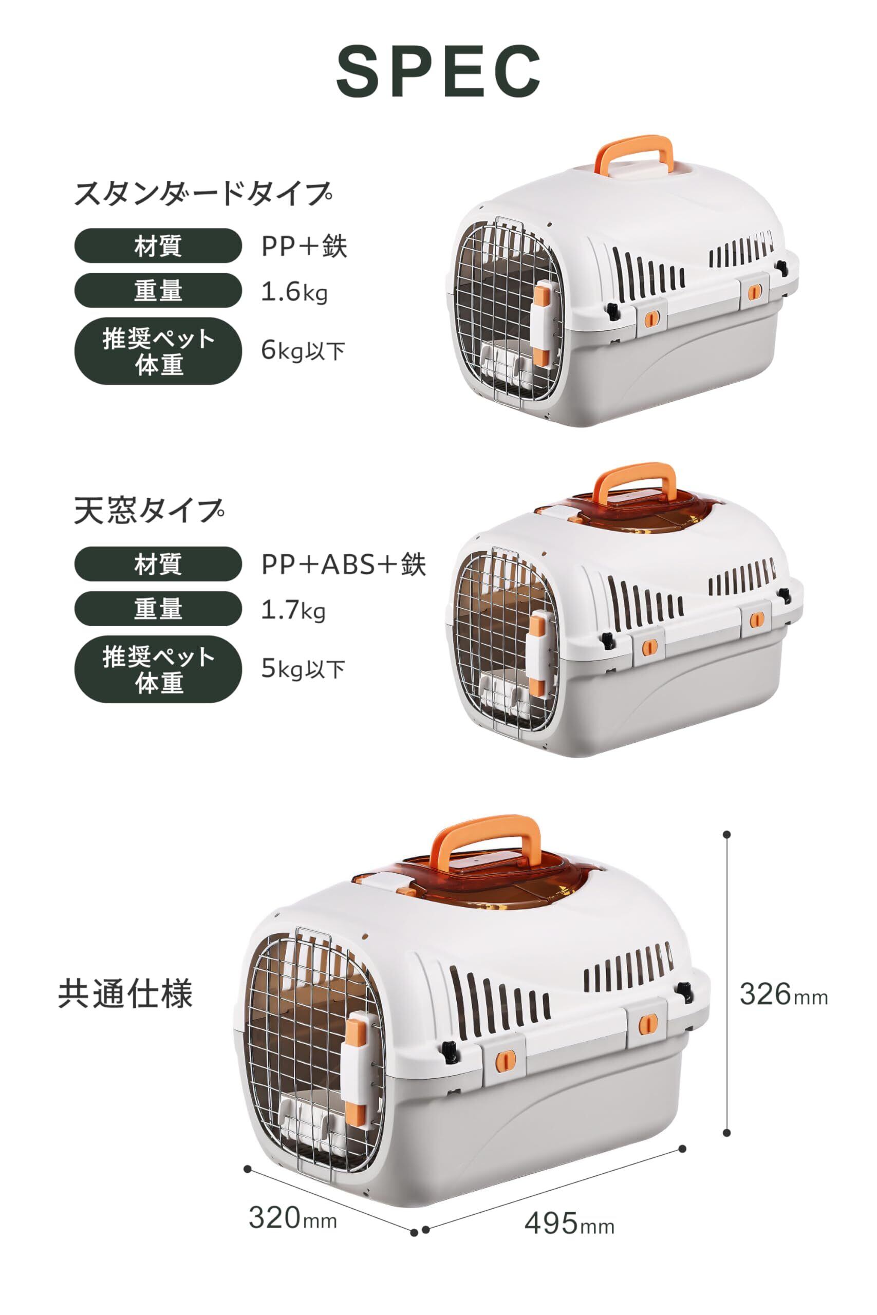 【新春セール】【万博出展ブランド】IATA基準クリア ペットキャリー [災害時の備えにも] 天窓からペットの顔が見えるタイプ 室内用ハウスとしても活躍 クレート ハードタイプ (グレー, 天窓タイプ) | wakuwakuland