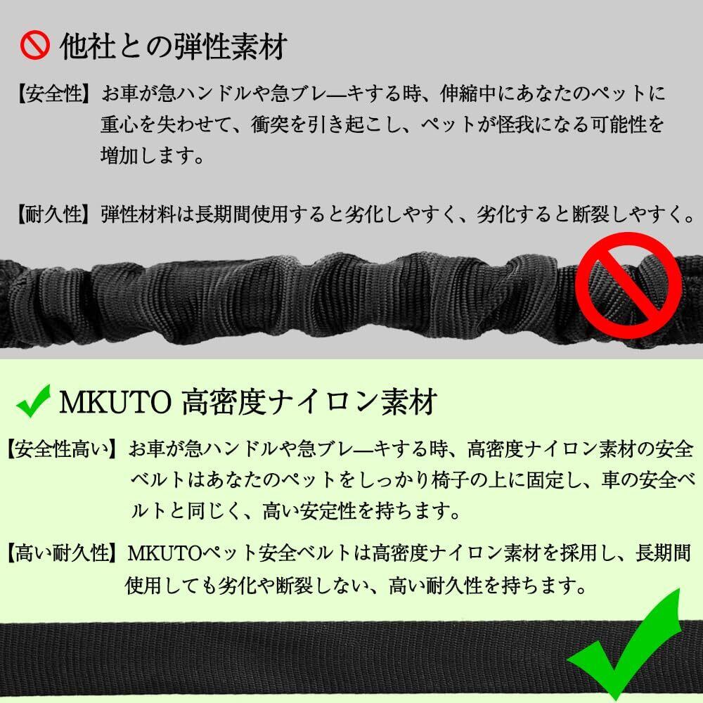 MKUTO ペット 犬用 猫 シートベルト ドライブ 車専用リード 安全ベルト 飛びつく防止 簡単装着(1本セット)