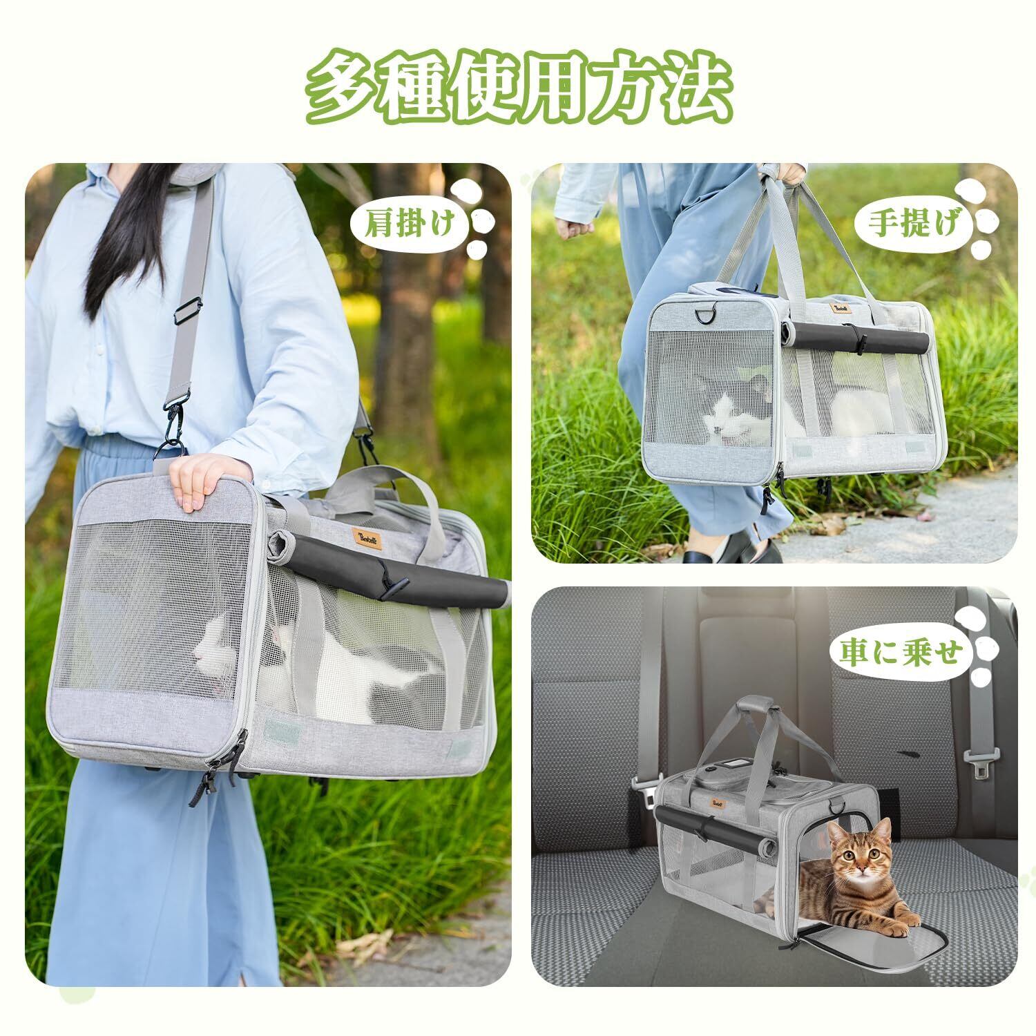 【在庫処分】Tresbro 猫 キャリー [アップグレード版] 猫 きゃりーバッグ ロック式ダブルファスナー カーテン付きの 猫 移動用キャリー 犬用キャリーバック 変形しない 通気性 車載/旅行/通院/防災害避難用 ペットバッグ 猫用 犬用 小型犬用 手提げ キャリー ショルダー(グレー) | wakuwakuland