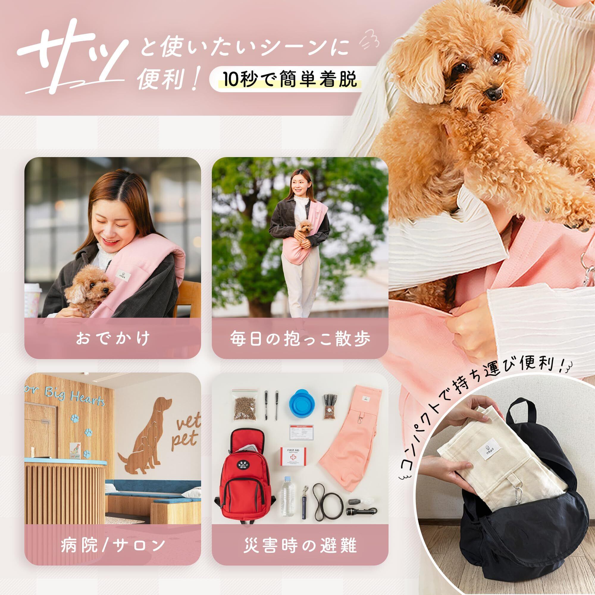 【日常使いにも最適】 特別なおでかけの日はもちろん、老犬のお散歩や体力のない子のお散歩中にもスリングがあれば安心! お掃除中やお仕事中でも使用できて、わんちゃんとのかけがえのない抱っこ時間が充実すること間違いなし️ 猫ちゃんのおうちスリングとしても人気です!