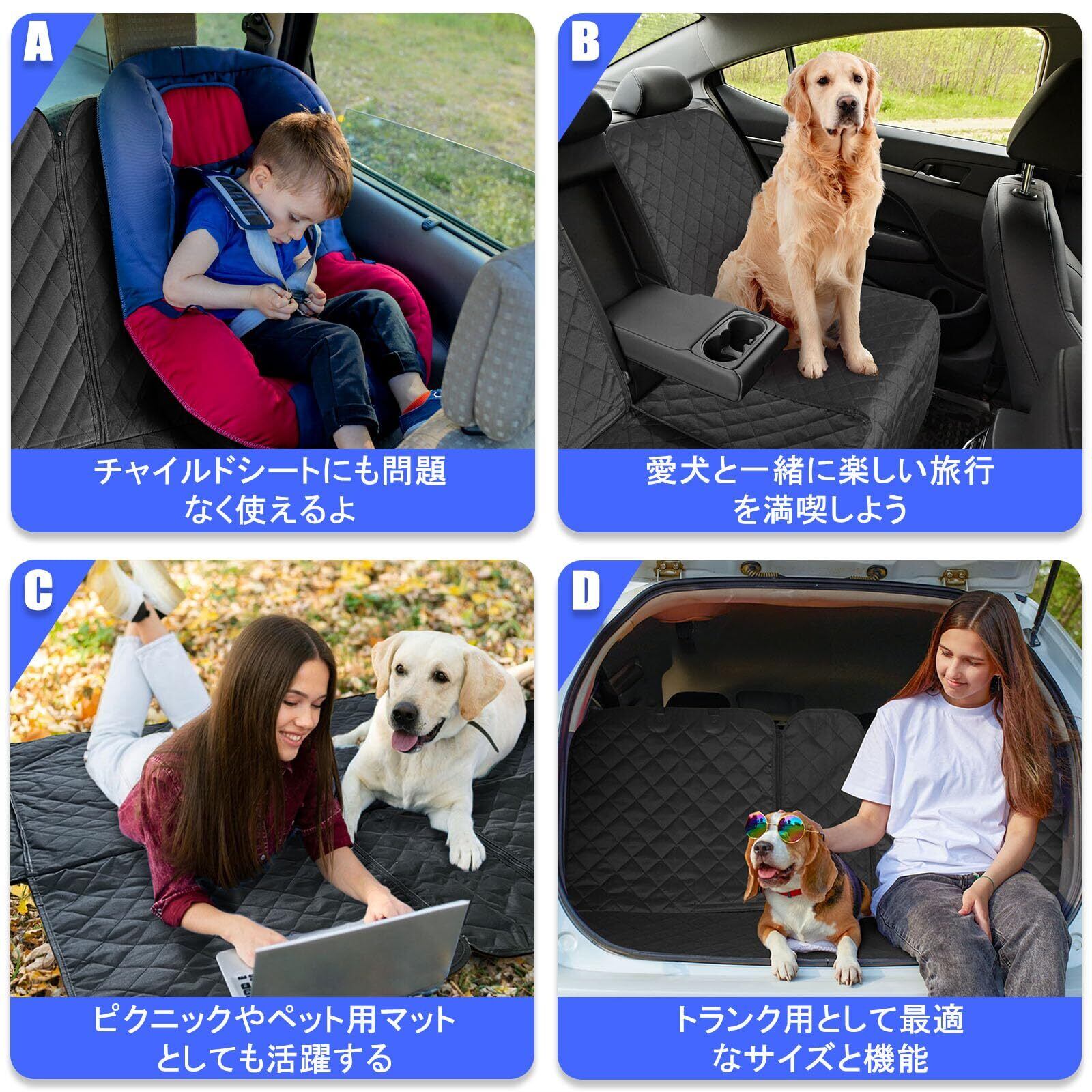 後部座席をしっかり保護、犬の毛や汚れ対策に最適: 高品質な防水オックスフォード生地を使用し、犬の抜け毛や汚れ、引っかき傷から車の後部座席をしっかりガード。愛犬とのお出かけを快適&清潔にサポートします