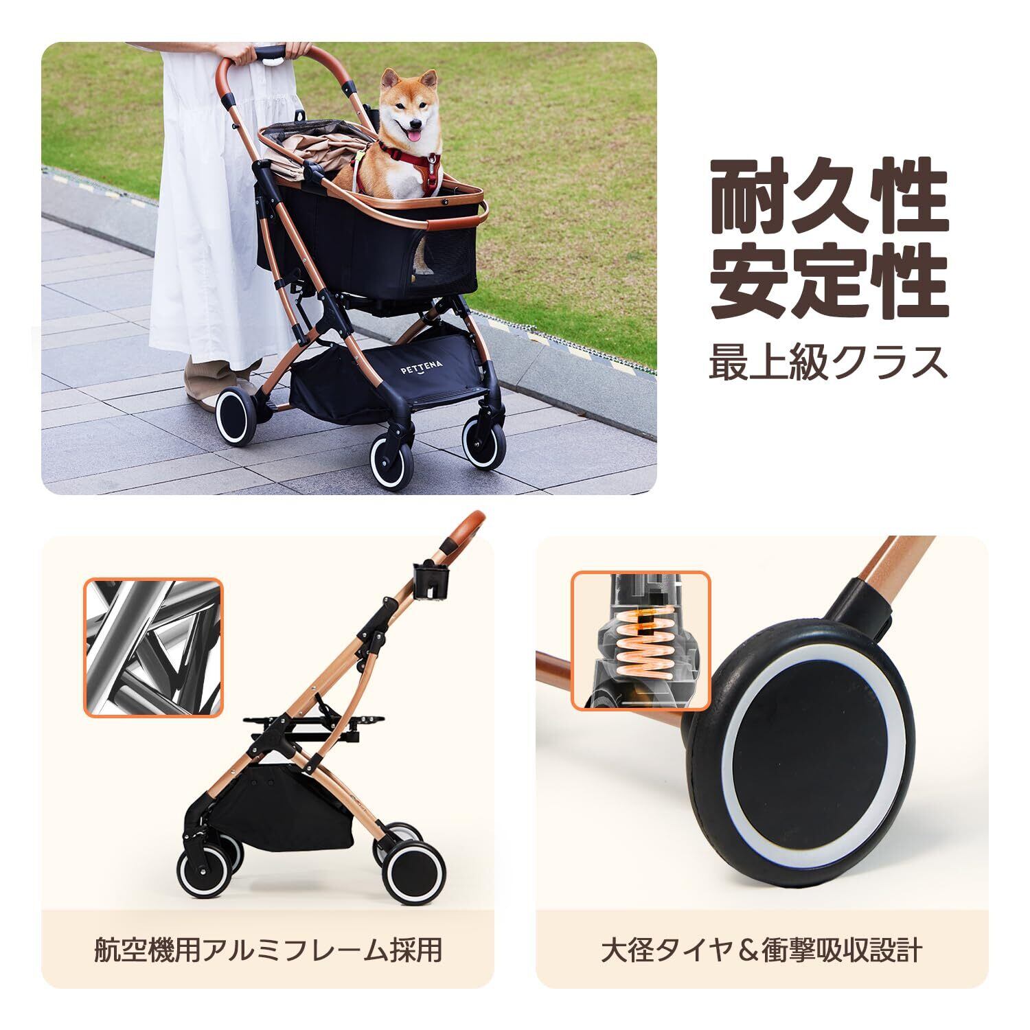 【優れた素材で耐用・収納力抜群】:PETTENAペットカートのキャリーコット内部は飛び出し防止リード2本付属しているので、ペットが急に飛び出していく心配もなく、安全性が高いです。 そにれメッシュ部分は、爪で引っ掻いても破けにくいしっかりとした素材です、通気性と可視性に優れており虫が中に入りにくいです。フレームは高強度航空用アルミニウム合金を採用して、強さと耐久性を実現します。またキャリーは高品質の高弾性防水600Dオックスフォードファブリックで作られ、耐摩耗性と通気性があり、長時間日光にさらされても色落ちしません。キャリー背面の収納ポケット、フレームにカップホルダーと底部に大きな収納スペースがあり、散歩や買い物の外出時に必要なペット用品などの収納には十分な容量があります。キャリーカバーと底部のバスケットは、取り外せて丸洗い可能です。