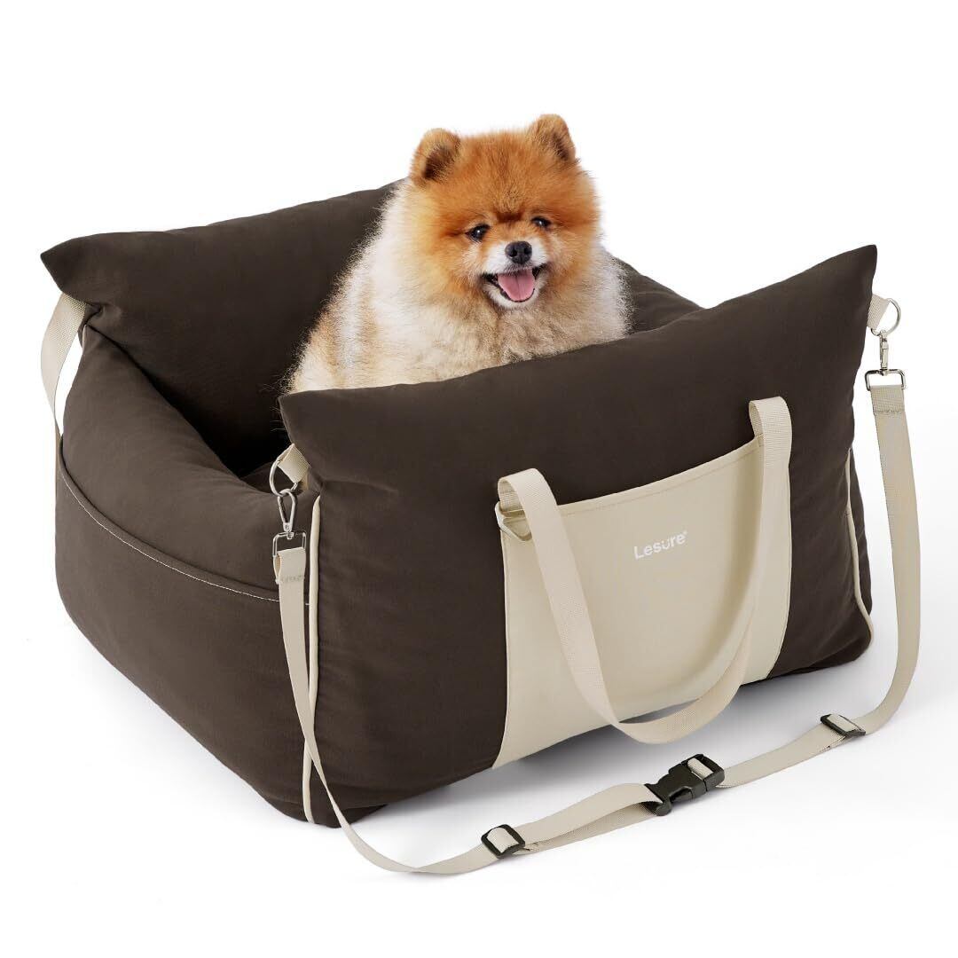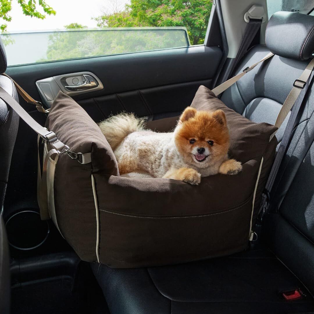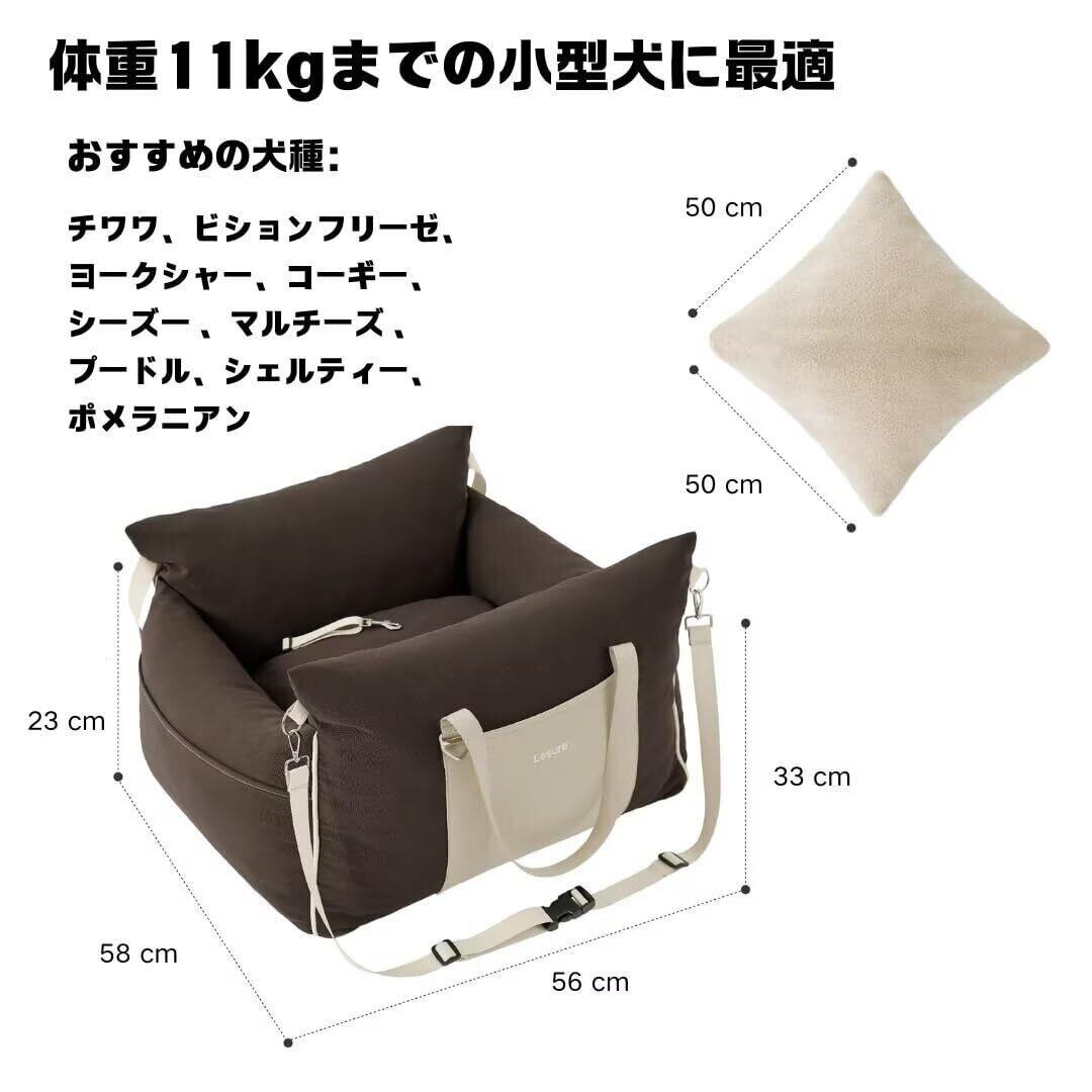 【新着商品】Lesure 犬 ドライブベッド ペットドライブボックス 犬 車 シート 小型犬 飛び出し防止 防水 厚め 収納バッグ付き 取り外し可能カバー 洗濯機対応 お手入れ簡単 後部座席&助手席対応 12Kg以下中小型犬適用 お出かけ 旅行 ブラウン | wakuwakuland