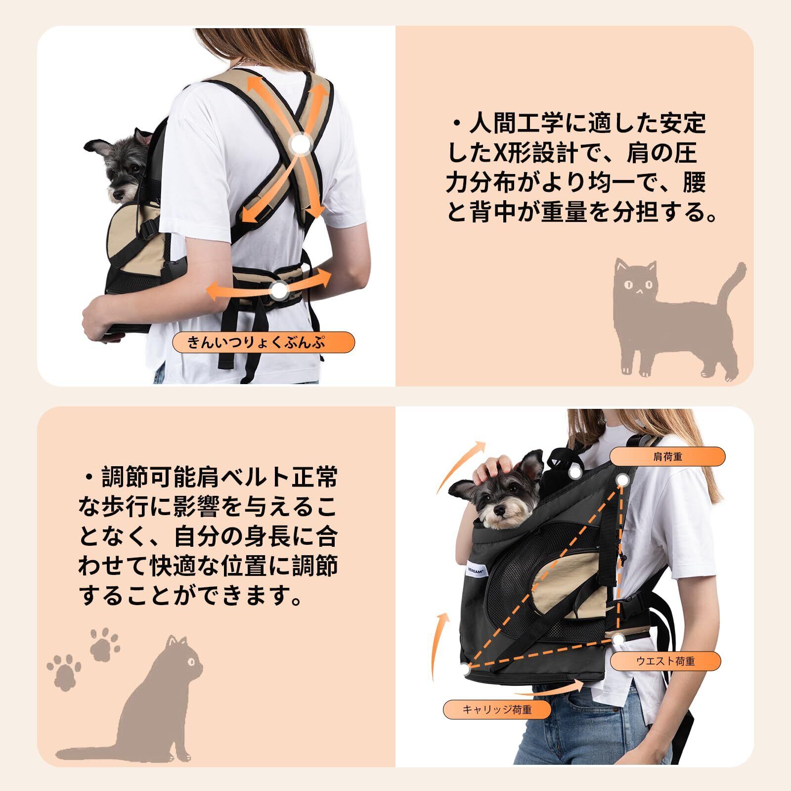 [ 前抱きユニークデザイン] 人体工学的デザイン、三角形の分散受力により頚椎をサポート、より丈夫で快適で;犬 抱っこ紐携帯する方が楽です肩ひもの質を心配する必要はありません。X型のクロスショルダーストラップご主人様の肩への負担も最大限に減り、また調節可能なストラップは身長に合わせて調節できます;通常のバックパックとしても使用可能
