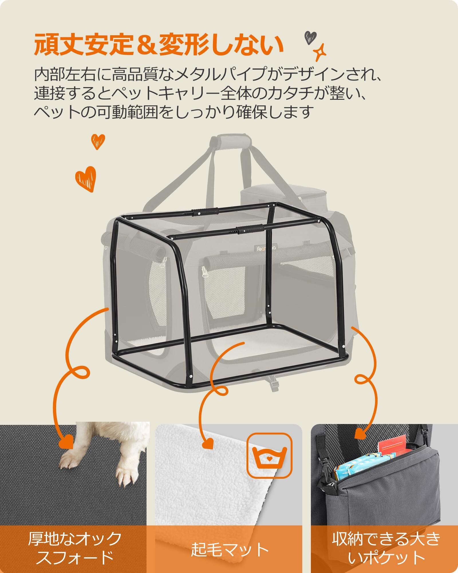 FEANDREA キャリーバッグ 中大型犬 70×52×52cm 犬用 ペットキャリー 折り畳める 室内外兼用 車用 病院 PDC70GY