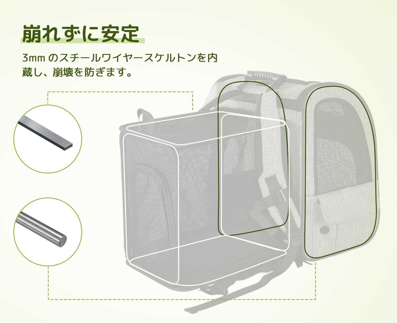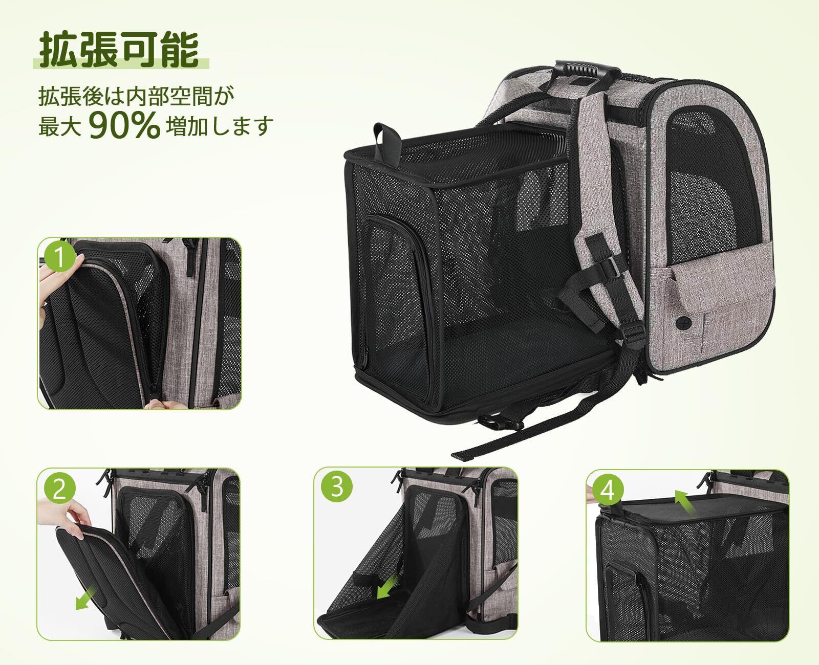 【在庫セール】ペキュート Pecute ペット キャリーバッグ 猫用 犬用 リュック メッシュ窓 通気性 拡張可能 2WAY ペットハウス ケージ 折り畳み お出かけ ドライブ 旅行 通院 防災 避難用 キャリー カーキ | wakuwakuland