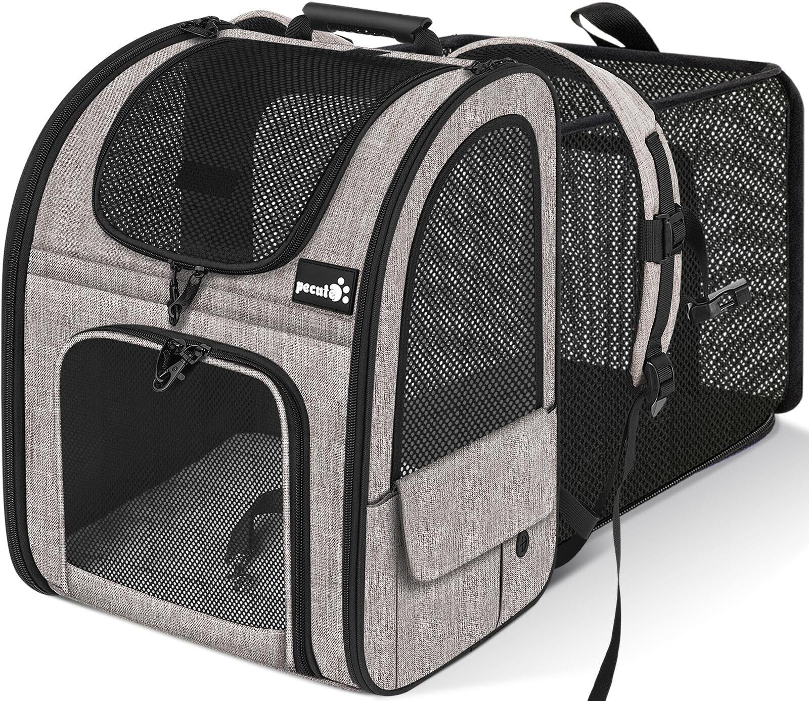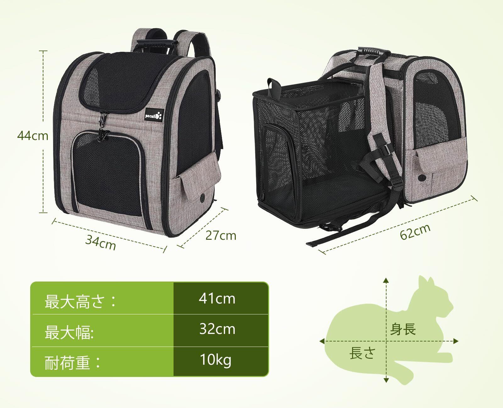 ペキュート Pecute ペット キャリーバッグ 猫用 犬用 リュック メッシュ窓 通気性 拡張可能 2WAY ペットハウス ケージ 折り畳み お出かけ ドライブ 旅行 通院 防災 避難用 キャリー カーキ