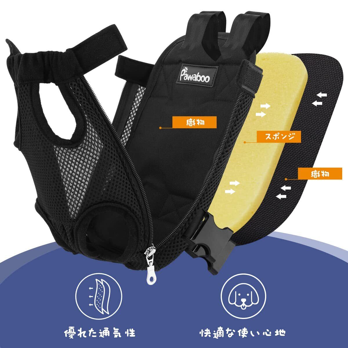 ペットバッグ Pawaboo ペット抱っこバッグ リュック型 ペット用 抱っことおんぶ兼用バッグ キャリー 肩パット付き 抱っこバッグ スリング 通気 おんぶ紐 飛ぶ防止 両手解放 快適 2WAY お出かけ用 中型 小型犬/猫兼用 Sサイズ BLACK