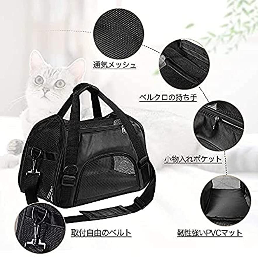 キャリー バッグ ペットキャリー ショルダー 手提げ 猫・小型犬用 5kg耐荷重 キャリー バッグ お洒落 通気性 折りたたみ おでかけ 旅行 通院 防災 Sサイズ 黒 (Sブラック)
