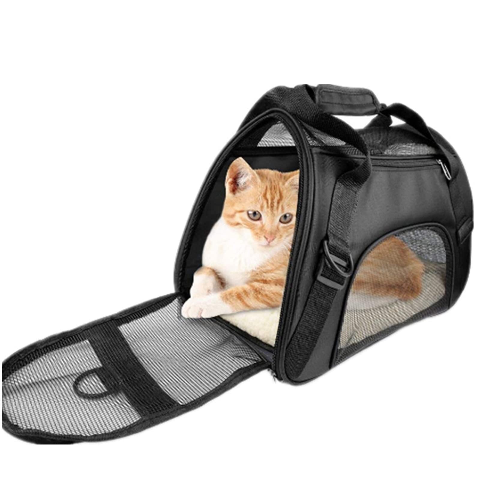 【在庫セール】キャリー バッグ ペットキャリー ショルダー 手提げ 猫・小型犬用 5kg耐荷重 キャリー バッグ お洒落 通気性 折りたたみ おでかけ 旅行 通院 防災 Sサイズ 黒 (Sブラック) | wakuwakuland