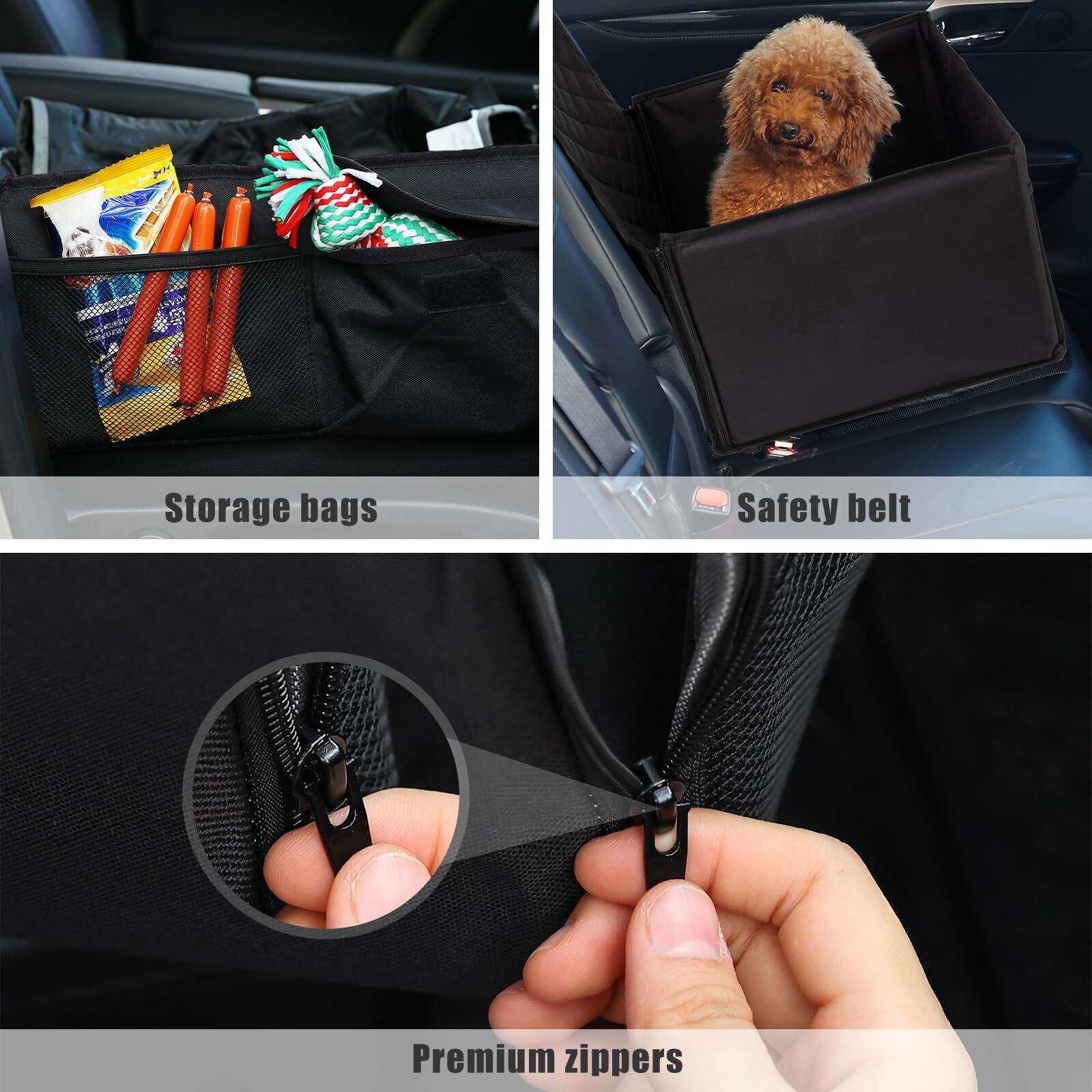 【楽に旅行】犬用カーシートはほとんどの小型および中型ペットに適しており、取り外しや折りたたみが簡単で、スペースを取らず、清掃が簡単で、車のシートを常にきれいに保ちます。ほとんどの車、トラック、SUVなどにフィットします。犬用シートには2つのポケットがあり、犬のおやつ、犬のおもちゃ、その他の犬用品、鍵、電話、ヘッドフォンなどの個人アイテムを持ち運ぶのに便利です。