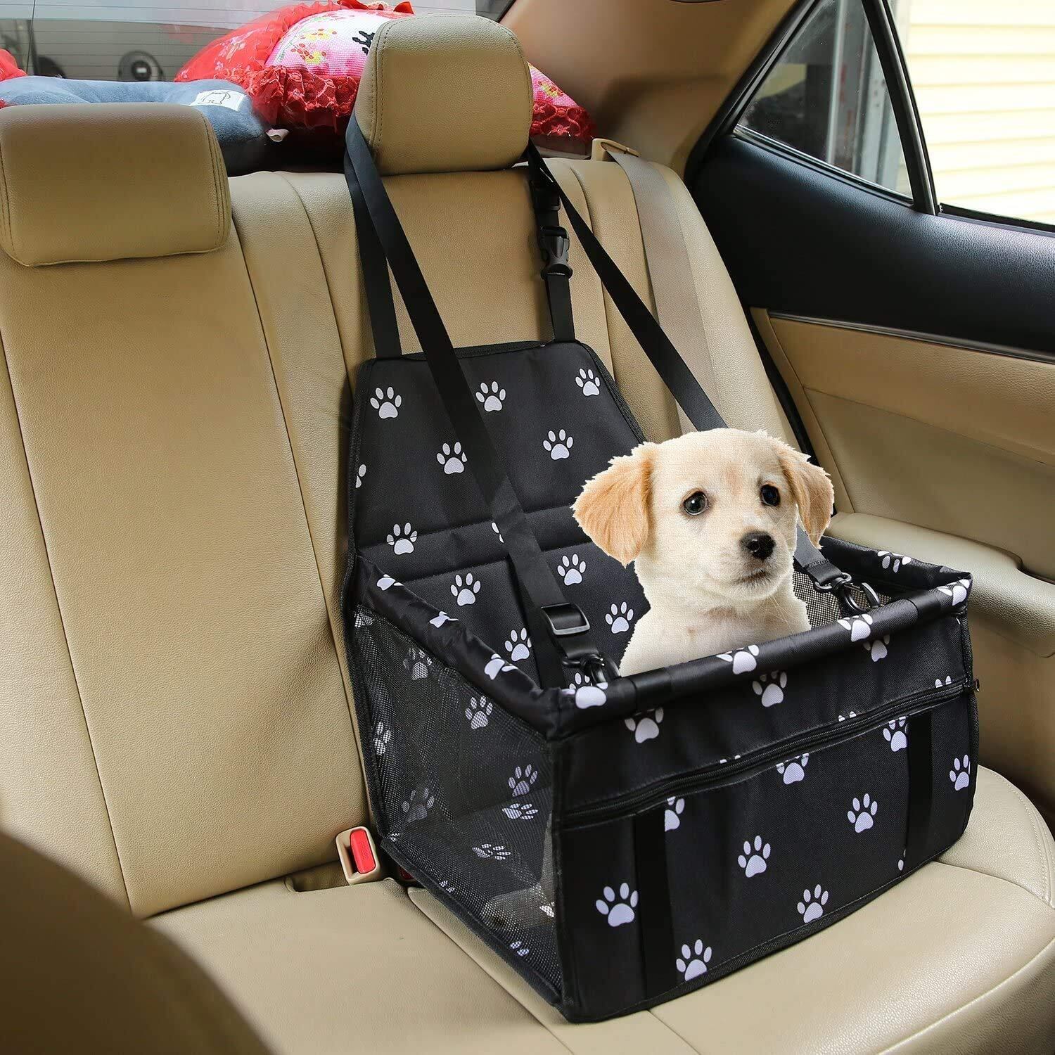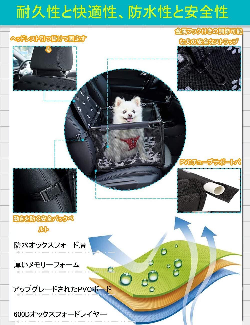 ペット シート 車用ペットシート 用品 犬 ペットドライブボックス 犬 くるま用品 シートベルト 犬用どらいやー 折り畳み式 通気 防水 汚れ防止 洗濯可 全車種 全種犬用猫用 コンパクト ペットキャリー カー用品 (黒い足跡)