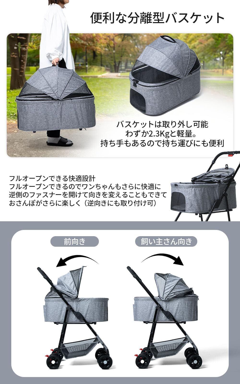 【楽しく快適なお出かけをサポート】 360度回転する前後輪でどんな場所でもスムーズに移動可能。開閉自由な屋根で、ペットとコミュニケーションを取りながら一緒に外の景色を楽しめます。最大180度の開閉で開放感があり、ビューウィンドウ付きでペットの安心感も高まります。さらに分離型デザインなので、ペットキャリーとしても使え、お出かけ先でのペットとの遊び方が広がります。軽量で耐久性に優れたフレームと生地で、どんな冒険にも対応できます。ペットとの時間をより豊かにするアイテムとして、毎日のお散歩がもっと楽しく快適になることでしょう。