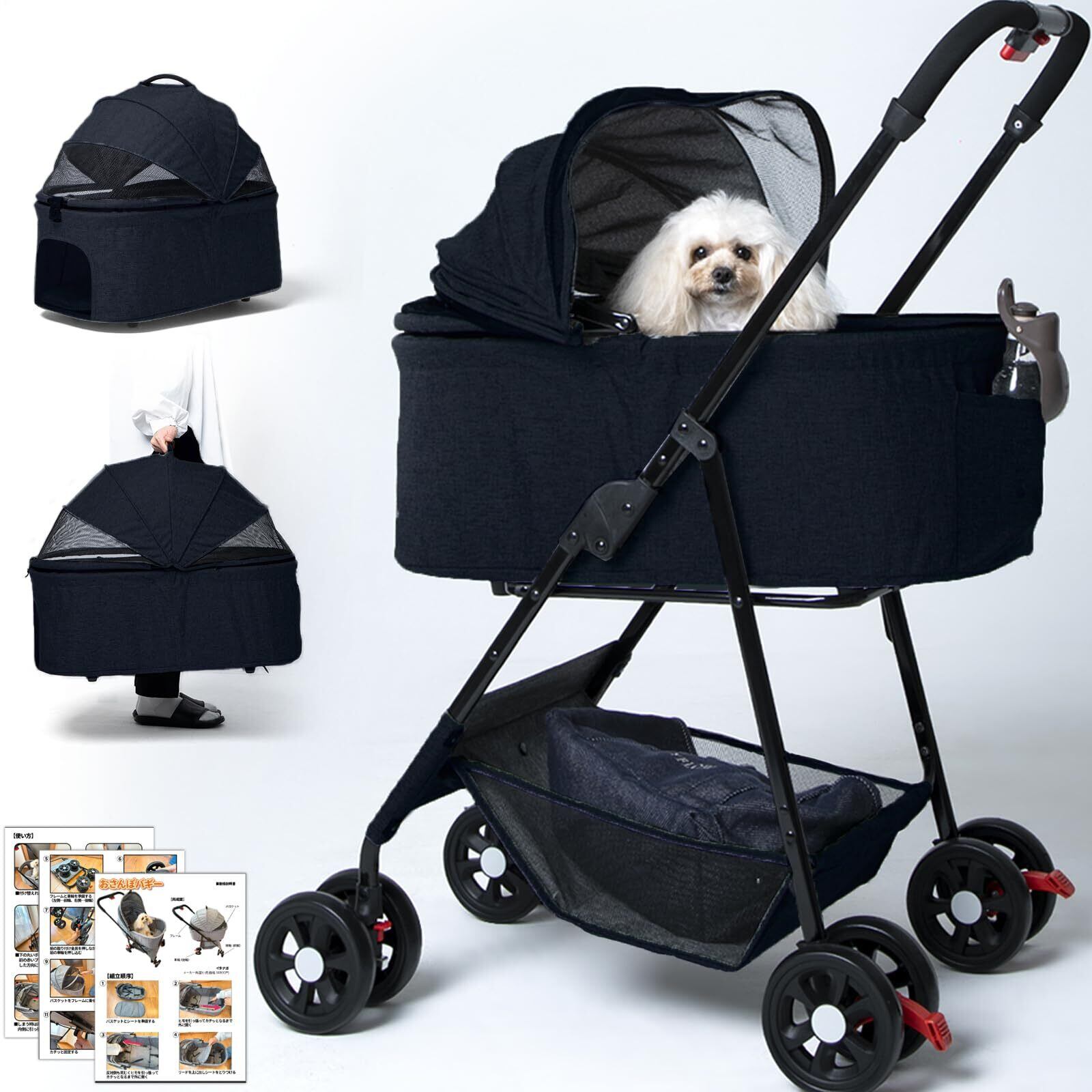 【新春セール】ペットカート【いぬのきもち掲載・獣医師推奨・軽量・組立簡単3way・耐荷重25kg】ペットバギー 分離型 犬用カート 折り畳み式 4輪 後輪ブレーキ 多頭 itanga おさんぽバギー (ブラック) | wakuwakuland