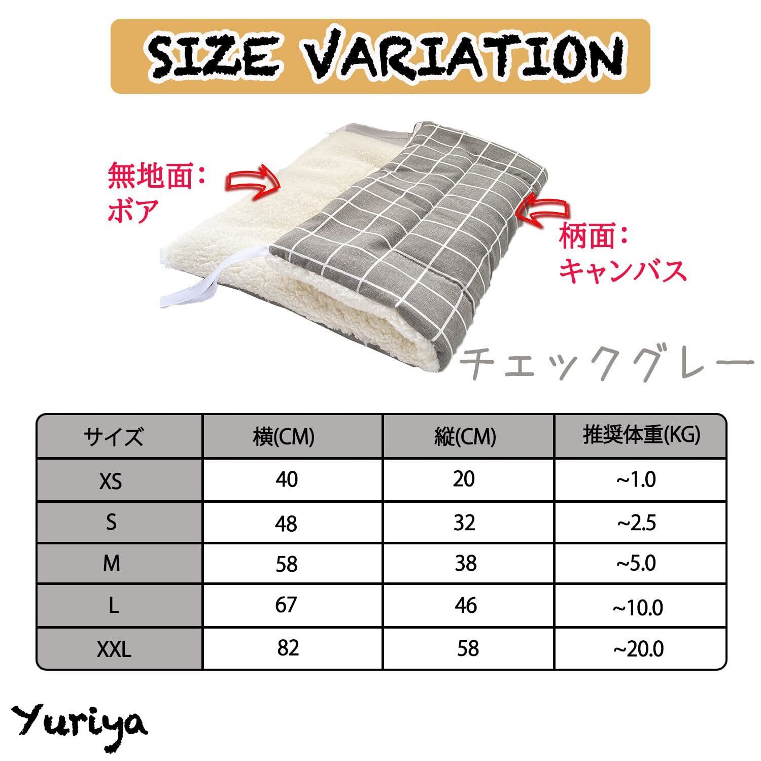 Yuriya ペット マット ケージ用 猫 ベッド 落ちない 四隅紐付 ふわふわ ボア キャンバス リバーシブル スクエア型 暖か 洗える 犬 布団 ずり落ち防止 通年 チェックグレー 32*48cm
