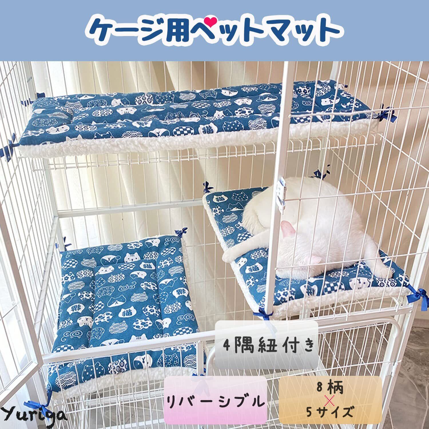 【使いやすい四角い形】フラットなスクエア型の猫・犬用クッションなので、ケージ内の棚や天井にぴったり。お部屋や木製ベッド、サークル内にも置きやすく、いつも使っているベッドの中に敷いて使うのもおすすめ!程よい厚みがあるので、棚板の硬い冷たい感じが伝わらず、ふわふわで柔らかいので、とても寝心地が良いです。