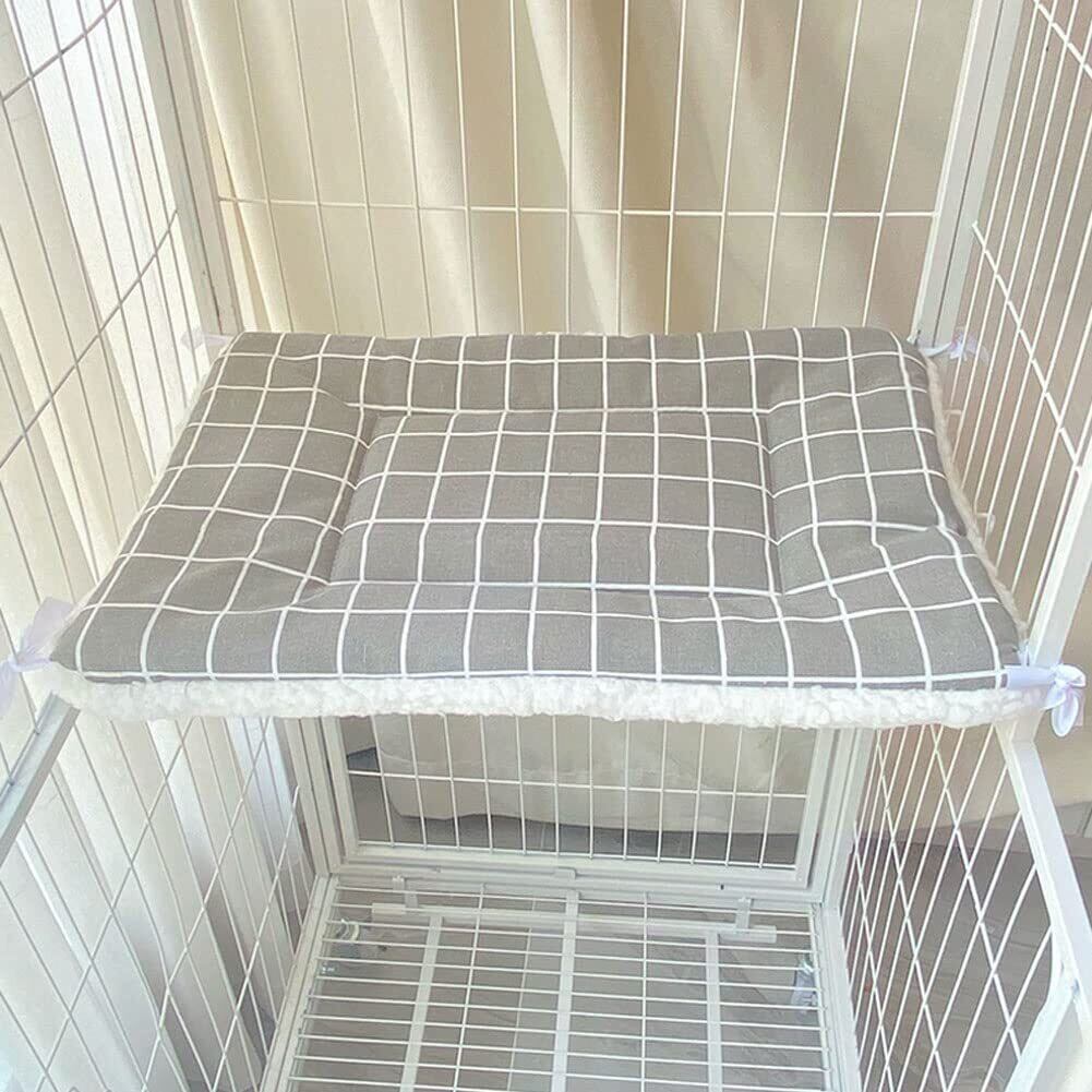 【特価セール】Yuriya ペット マット ケージ用 猫 ベッド 落ちない 四隅紐付 ふわふわ ボア キャンバス リバーシブル スクエア型 暖か 洗える 犬 布団 ずり落ち防止 通年 チェックグレー 32*48cm | wakuwakuland