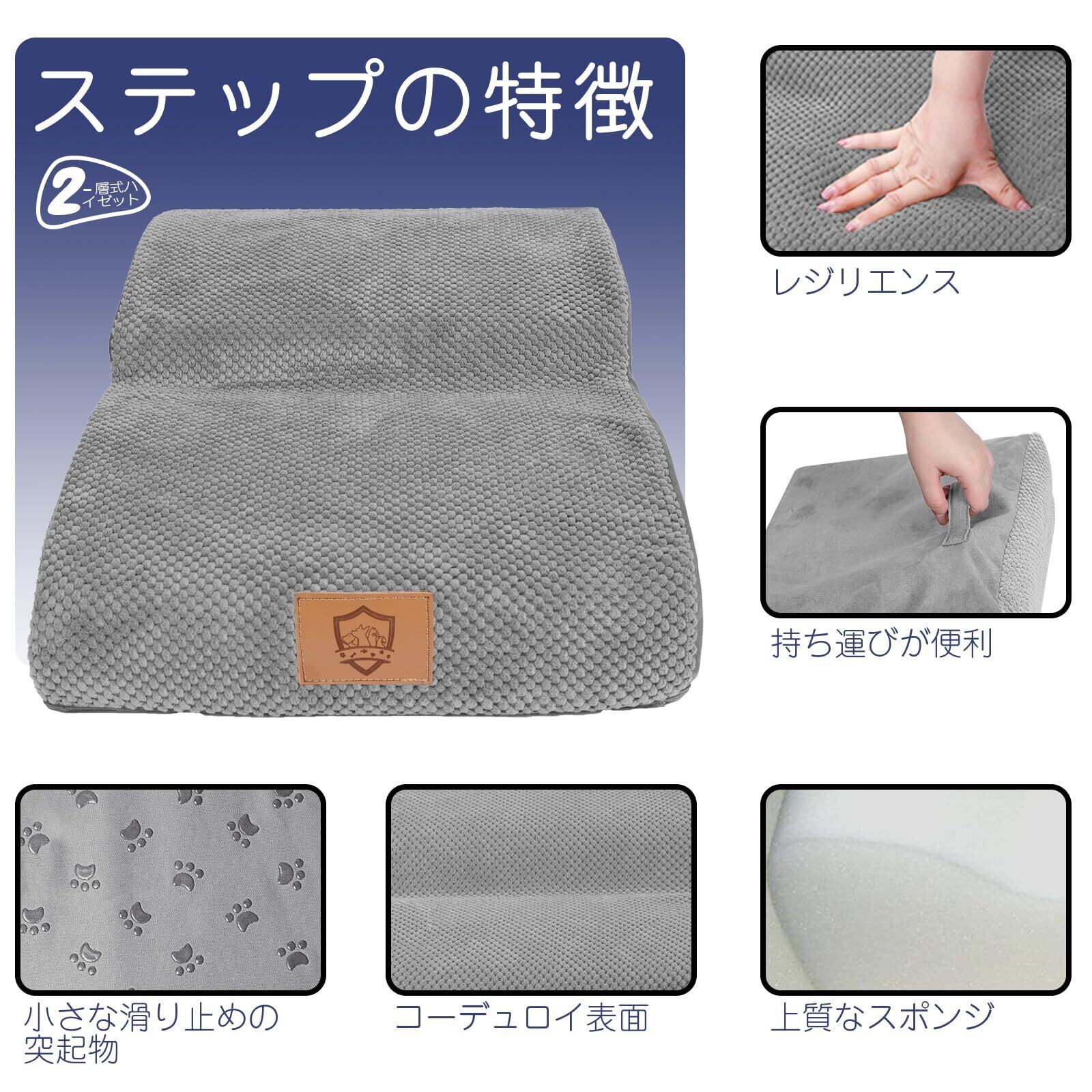 安定性が優れる:ステップの底に滑り止めが付いていて、ステップが飛び乗ってもずれないので安全です。カバーはコーデュロイの材質で、柔らかくて滑りにくい、爪も引っ掛かないので、ペットがステップで滑ったり転んだりはしません。より安心に使えます。カバー取り外し可能で、洗濯機で洗えるのでとても便利です。