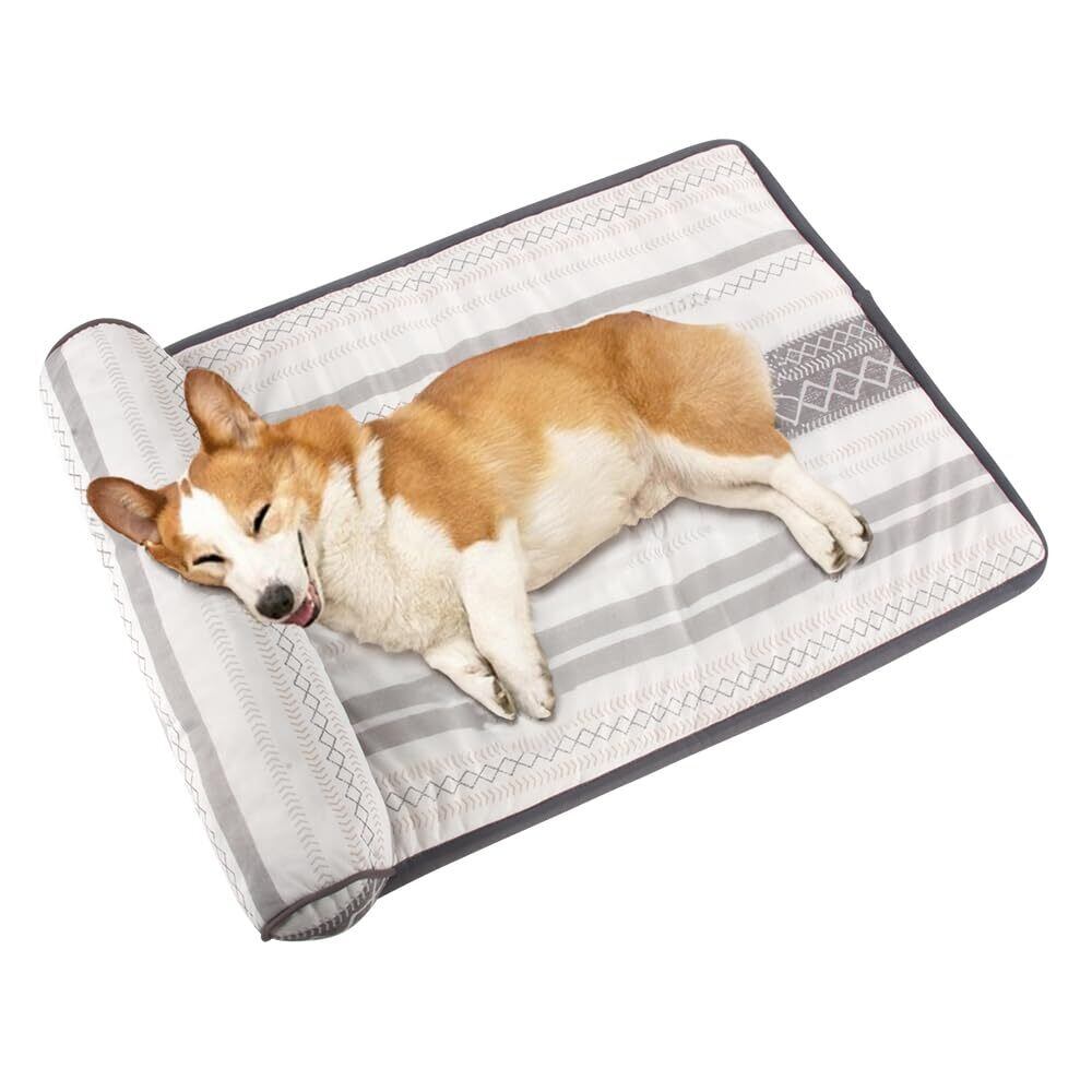 【新着商品】Peto-Raifu ペットマット 猫 犬用 枕付きマット 接触冷感 ペットベッド ペットシーツ ペット敷きパッド ペットごろ寝マット ソフトクールマット 夏用 クールマット 暑さ対策 ひんやり 軽量 涼しい 快適 洗える キリム グレー 約75x55cm | wakuwakuland