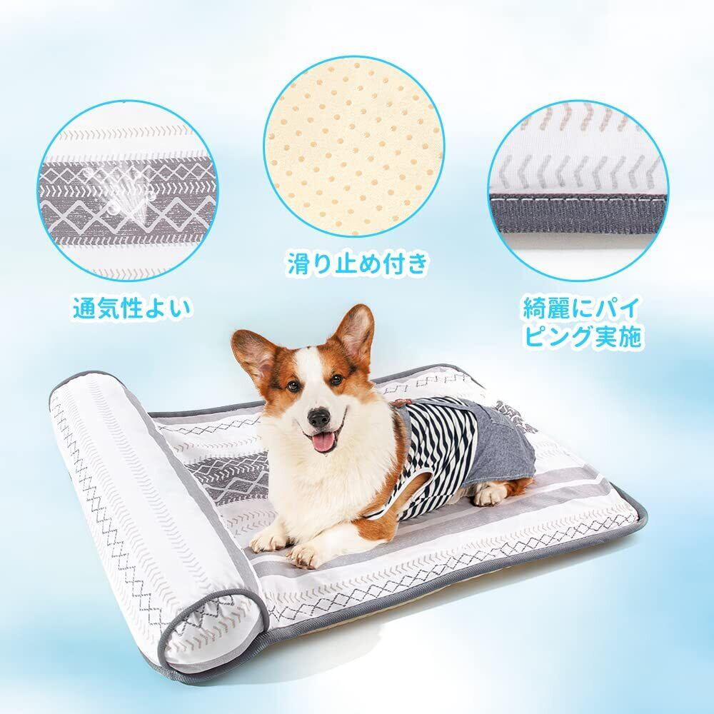 Peto-Raifu ペットマット 猫 犬用 枕付きマット 接触冷感 ペットベッド ペットシーツ ペット敷きパッド ペットごろ寝マット ソフトクールマット 夏用 クールマット 暑さ対策 ひんやり 軽量 涼しい 快適 洗える キリム グレー 約75x55cm