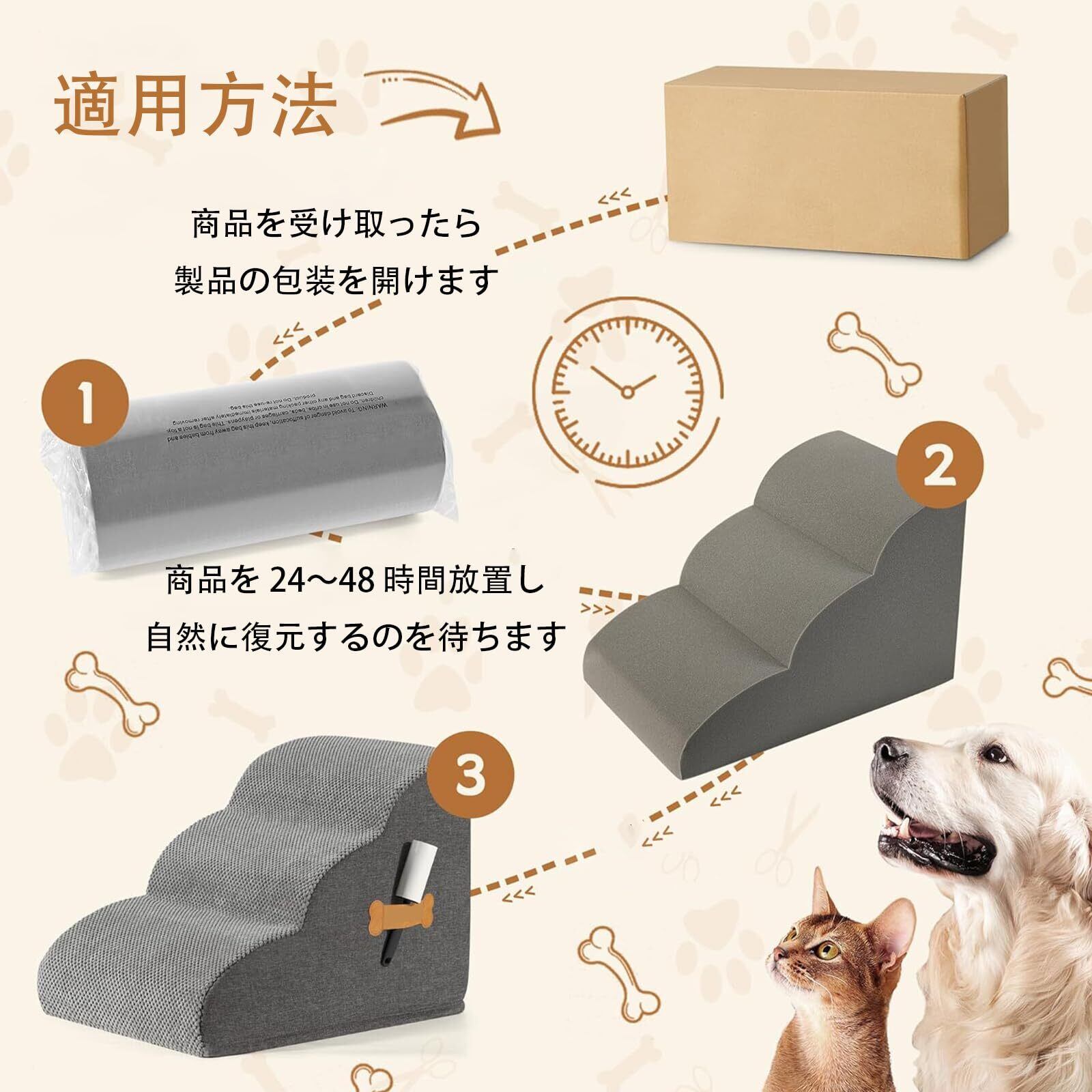【ユニークなデザイン 犬 ステップ】純粋な泡の30D密度により、クッション性もリバンド性もよく、衝撃を減らせる上に凹むことはありません。この階段はペットが上を歩くときにより安定します。犬用ベッドステップはペットが移動する際に強力なサポートを提供します。低角度斜面設計で関節を保護します。