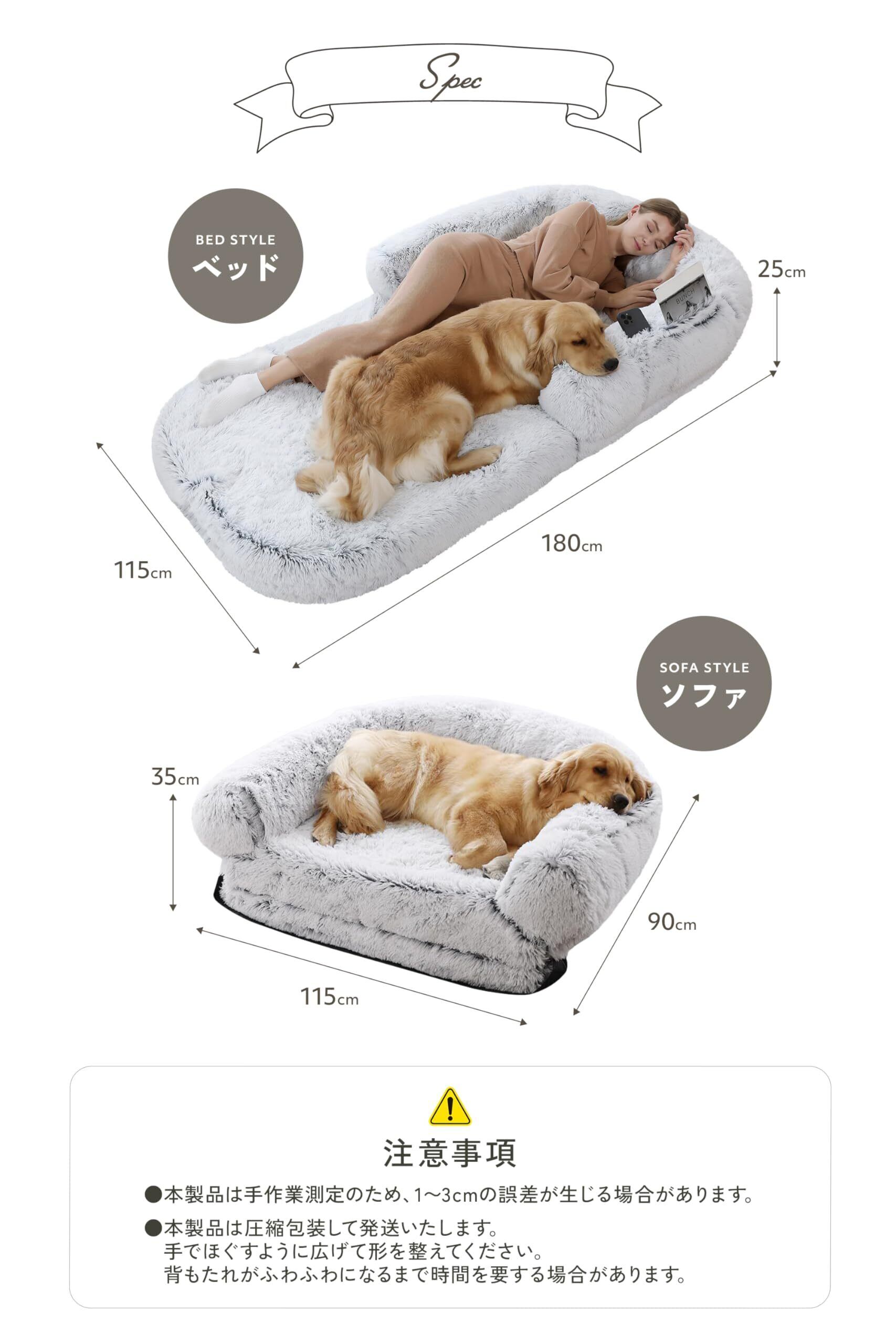 【洗えるなめらか生地の犬用2WAYソファーベッド】 愛犬と一緒に寝られるドッグベッド ペットベット 大型犬 多頭飼い 洗える 快適ソファー (ココアブラウン)