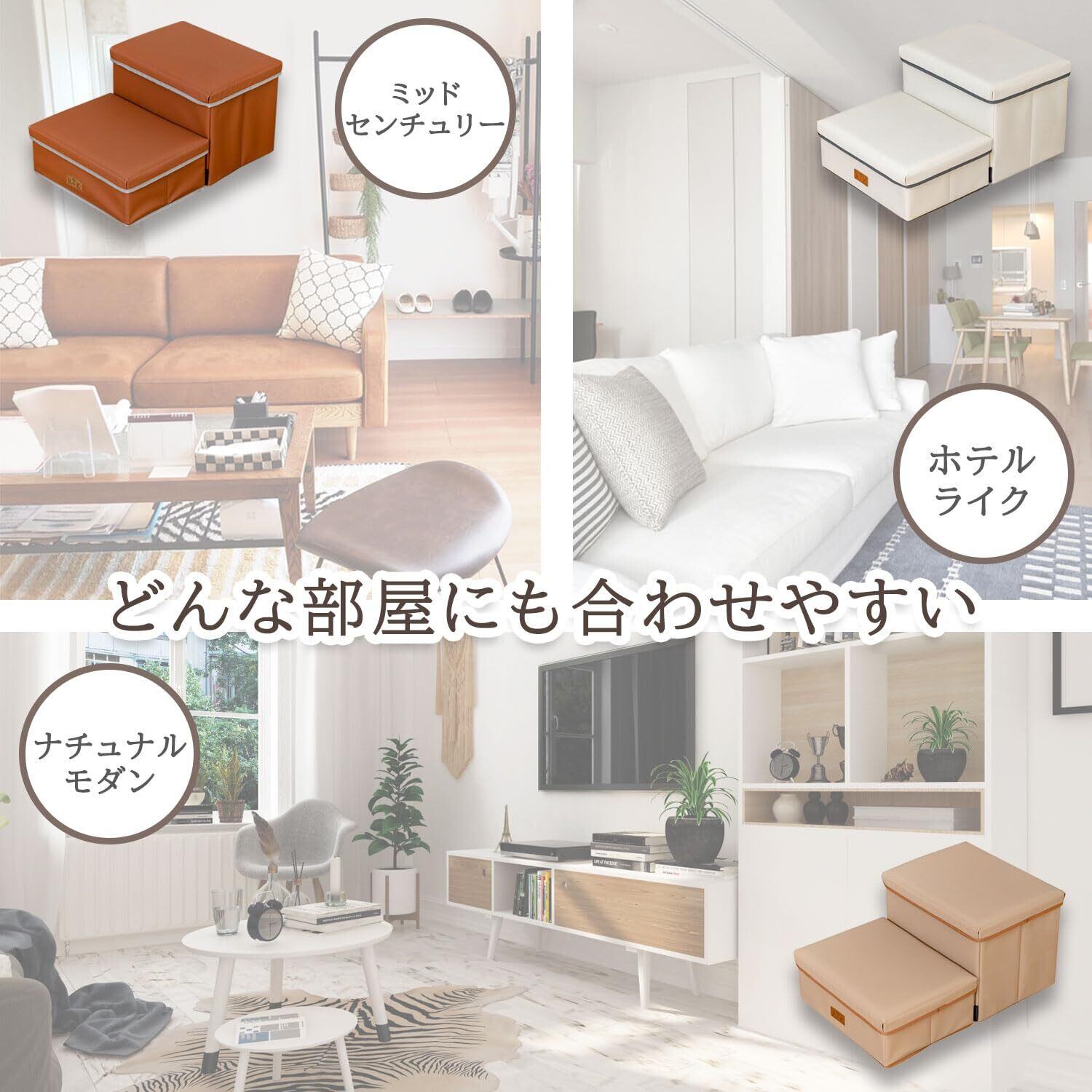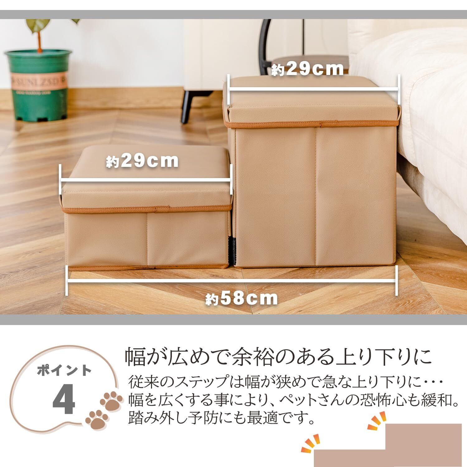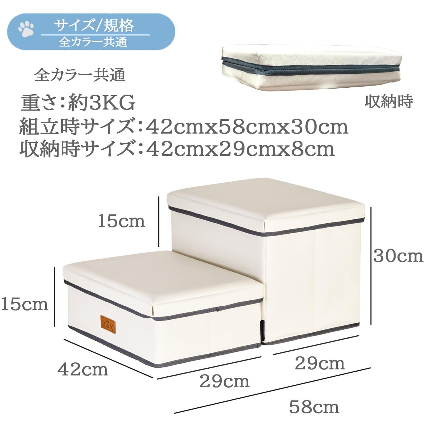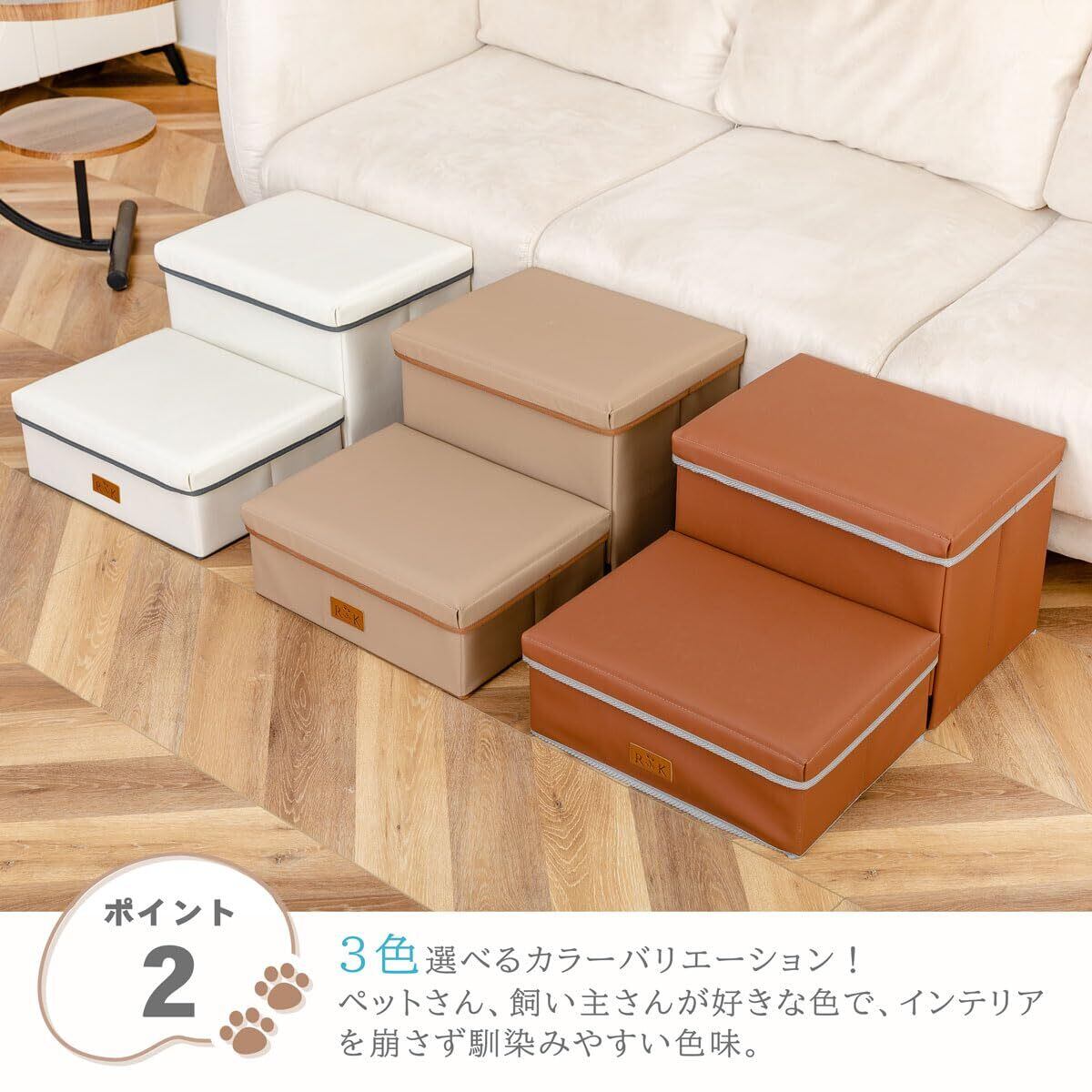 【在庫セール】RK ドッグステップ ペットステップ 犬用階段 踏み台 2段 本体PVCレザー使用 収納 折りたたみ 小型犬 高さ30cm 奥行58cm 日本メーカー企画品 トレンチ | wakuwakuland