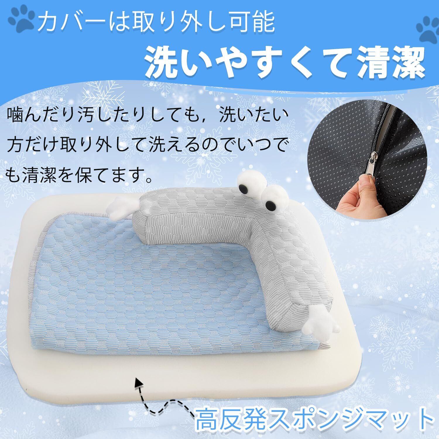 【在庫セール】GlamPurr ペット ベッド クッション マット犬 猫 夏用 接触冷感 あごのせ ペット用ベッド 寝心地 おしゃれ ひんやり 洗える 滑り止め 通気性 クール 涼しい 暑さ対策 (ボンディブルー, S) | wakuwakuland