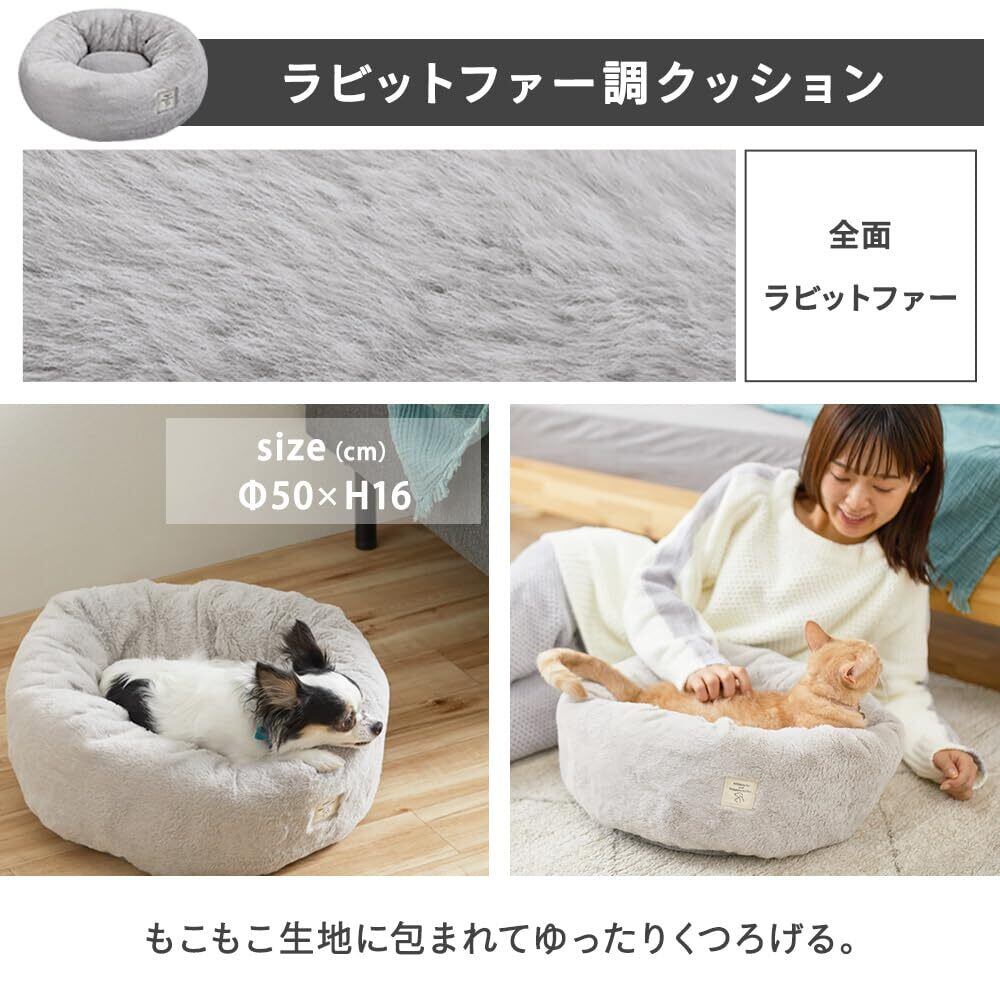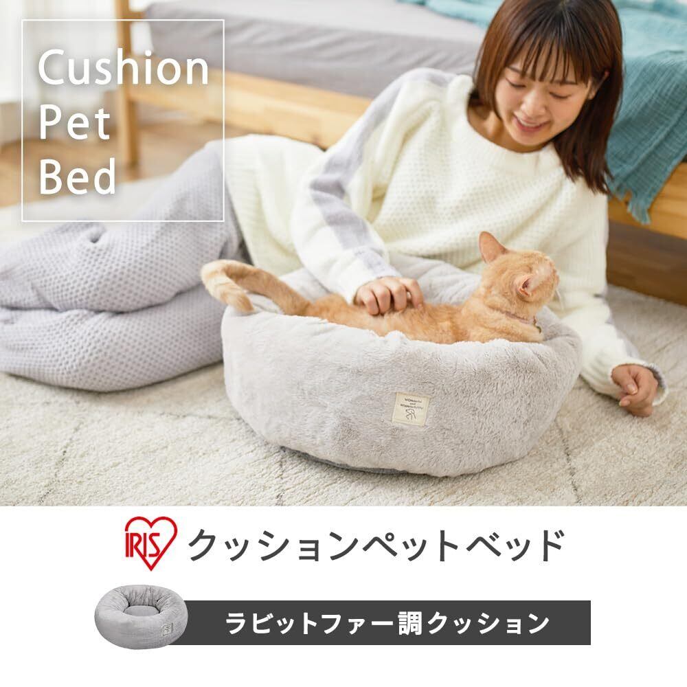 アイリスオーヤマ(IRIS OHYAMA) 犬 猫 ベッド ラビットファークッション ペットベッド PRCB-500 グレー 直径約50×高さ約16