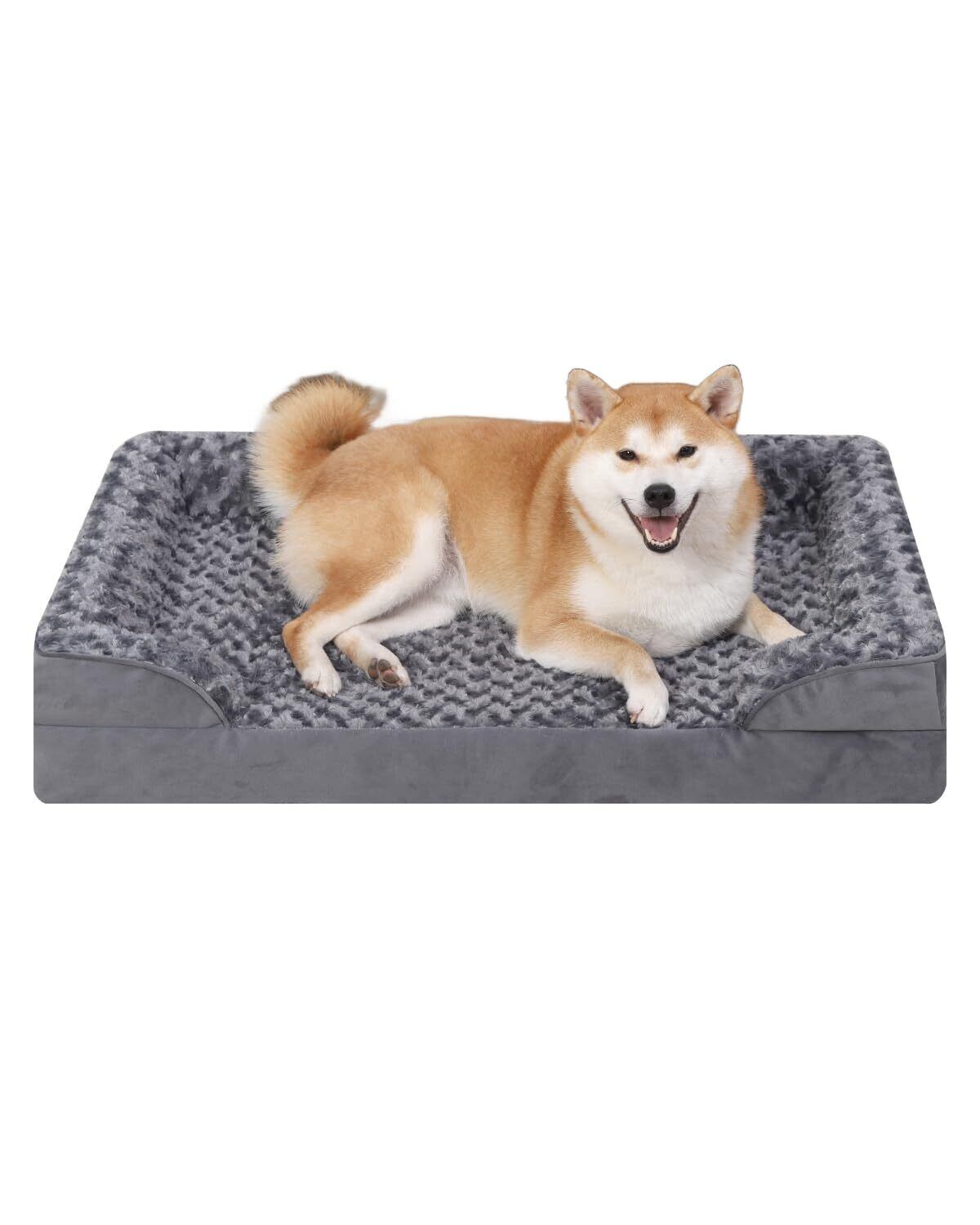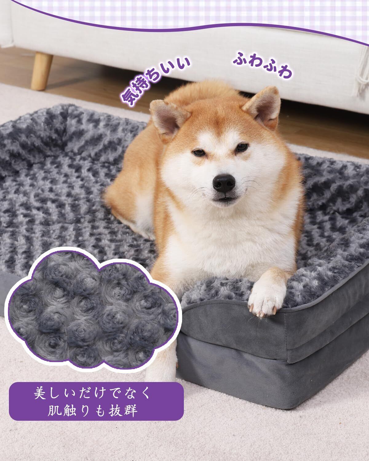 【新春セール】KSIIA 犬 ベッド 高反発 ペットベッド 防水 犬用ベッド 洗える 犬のベッド 体圧分散 犬 クッション 枕付き 取り外せるカバー 滑り止め オールシーズン 高齢犬 小型犬 中型犬 大型犬 猫 L 90×57×16 cm グレー | wakuwakuland