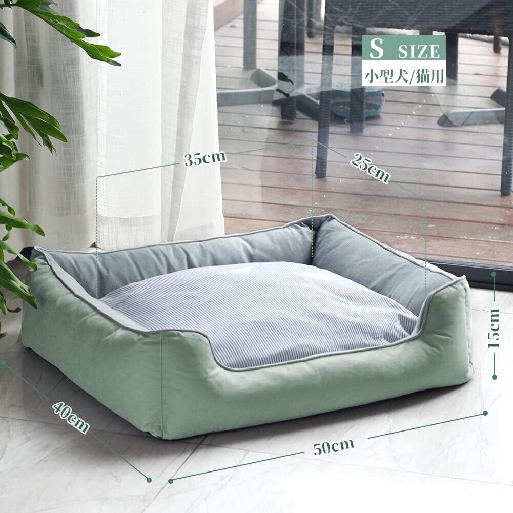 ペットベッド ペットソファ 猫用 犬用ベッド 寝床 通年タイプ リバーシブルクッション付き カバー取り外し可能 洗える 柔らかい ふわふわ暖か 寒さ対策 中小型犬/猫用 (グリーンS)