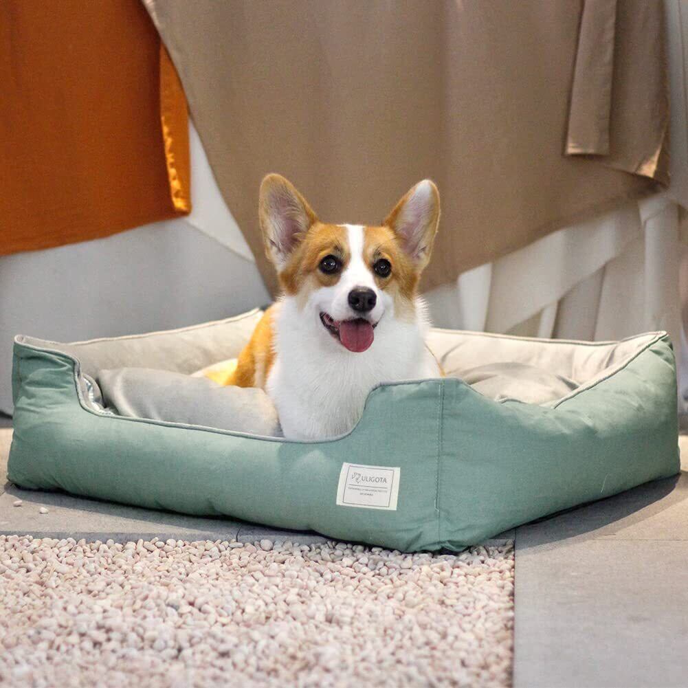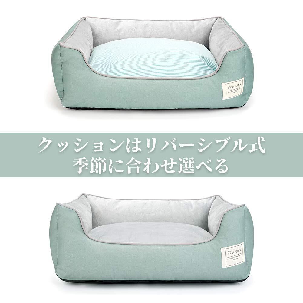 【新着商品】ペットベッド ペットソファ 猫用 犬用ベッド 寝床 通年タイプ リバーシブルクッション付き カバー取り外し可能 洗える 柔らかい ふわふわ暖か 寒さ対策 中小型犬/猫用 (グリーンS) | wakuwakuland