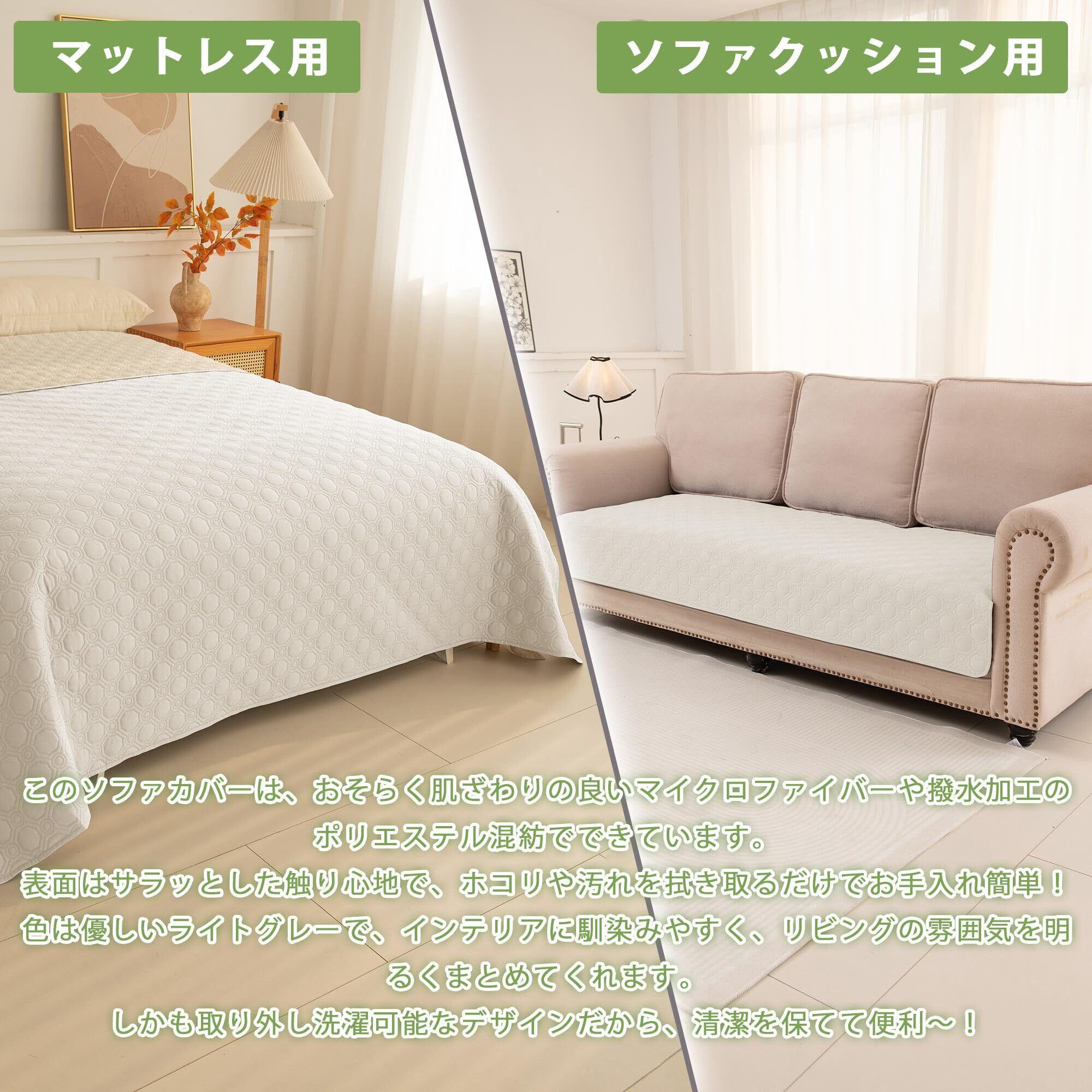 【全方位保護&多用途使用】食物のこぼれやホコリから家具を守るだけでなく、ペットの引っ掻きや噛みつきにも耐える耐久性を実現。産後・術後の失禁ケア、赤ちゃんの寝汗やよだれ、子供のおねしょ、高齢者の尿失禁対策など、様々なシーンで活躍します。洗濯可能なため繰り返し使用でき、経済的で環境にも優しい設計です。