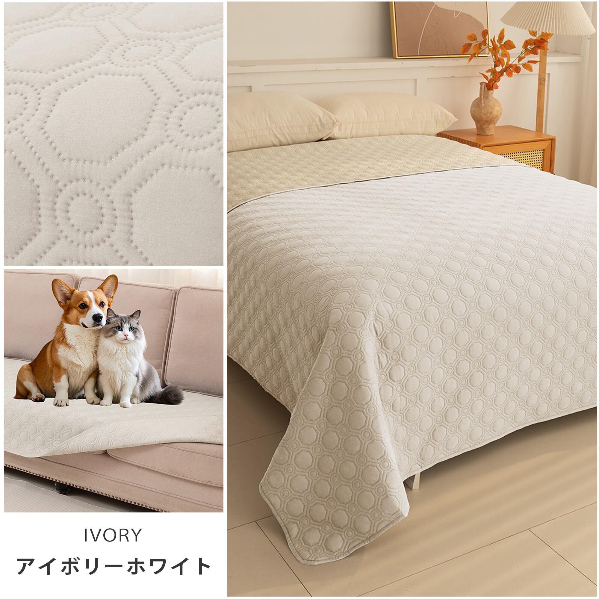 TIANSHU 防水ベッドカバー マルチカバー ペットマット ソファパッド かけるだけ 大判 撥水加工 リバーシブル 洗える 速乾 防ダニ 汚れ防止 爪とぎ防止 プロテクター 滑り止め 犬猫 おねしょ 尿失禁対策 介護用 ベビー 高齢者 ペットスペース カウチ ソファー ベッド 寝椅子 床に適用(97×190cm,アイボリーホワイト)