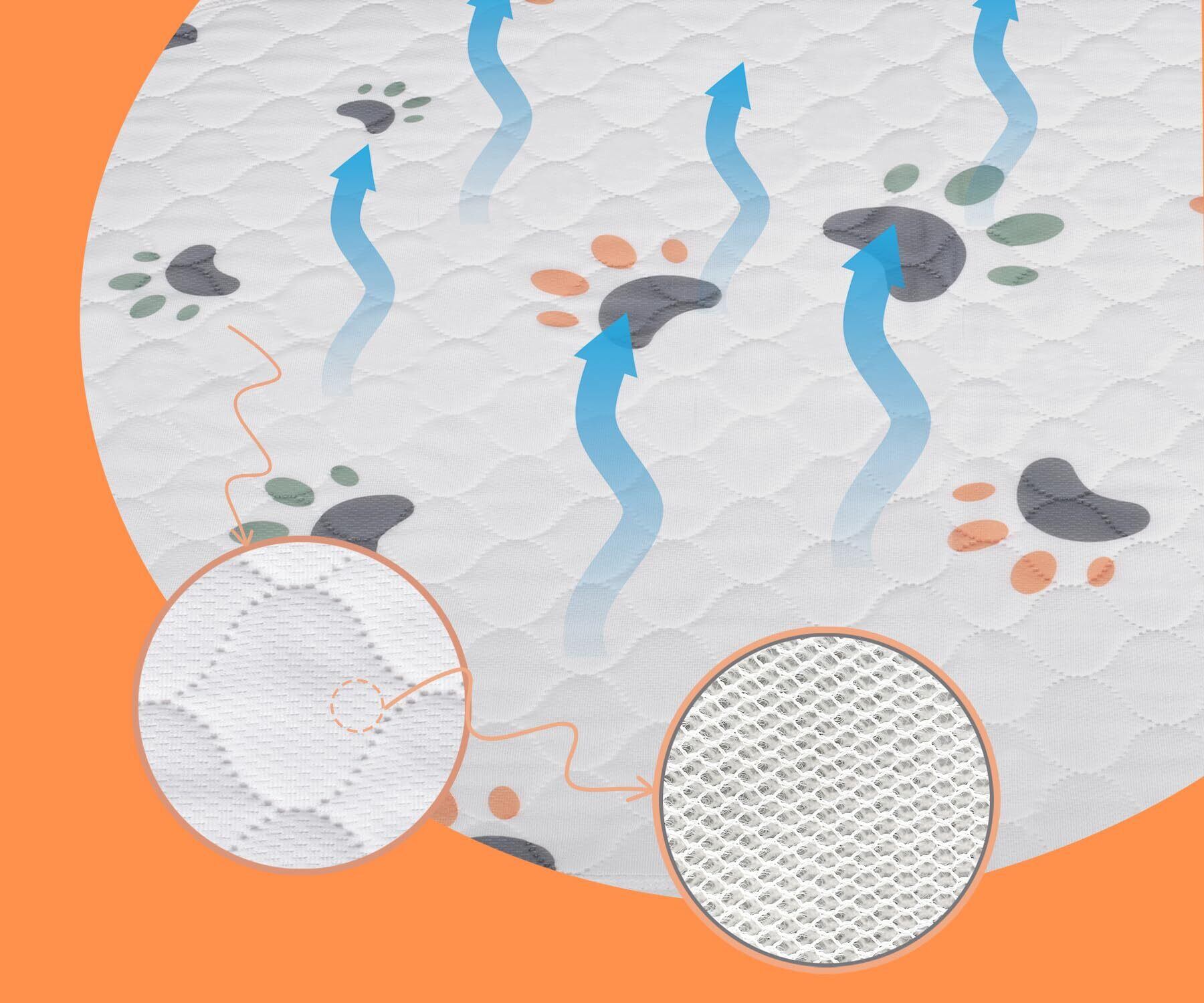 メッシュ通気層:ペットおしっこマットの表面にメッシュ通気性布が付いているので、通気性が良く、四季に適する。そして、乾燥しやすい