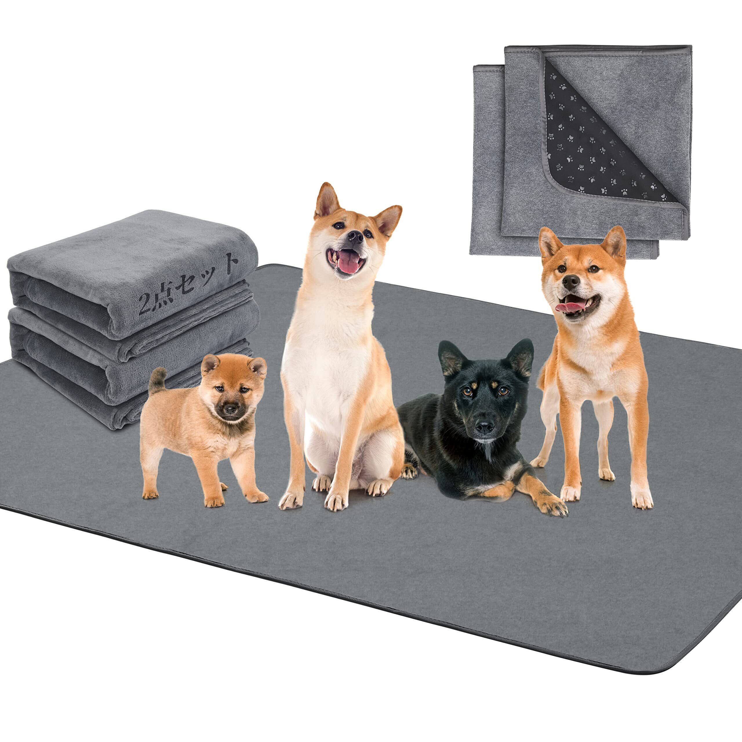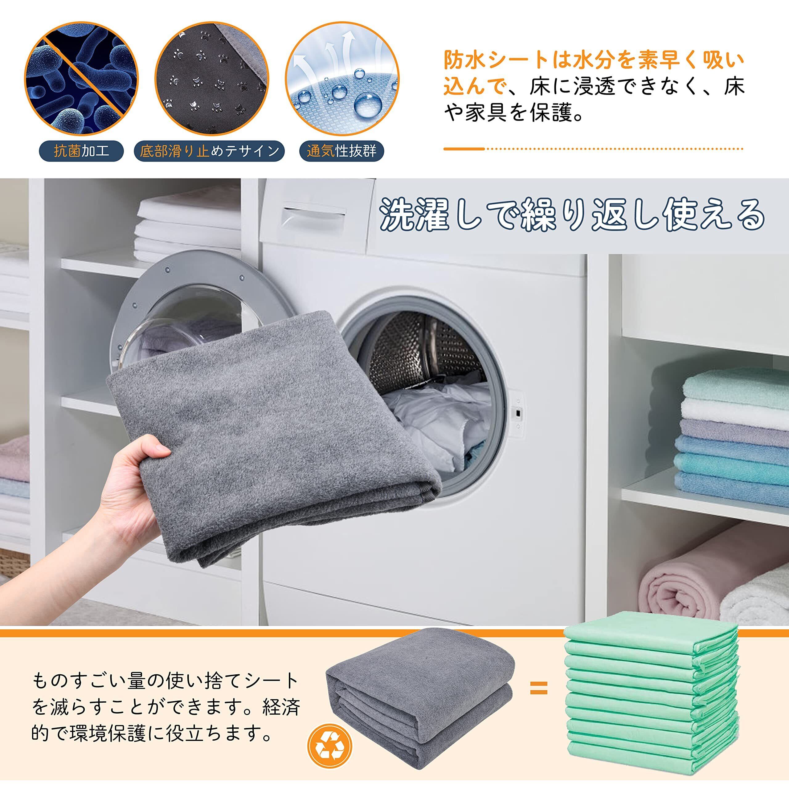【新春セール】【2枚セット】犬 猫用洗えるペットシーツ 繰り返し使える犬用おしっこマット ペットマット 漏れにくさ 噛み耐性 速乾 消臭 介護 制菌 超吸収 (90*60cm, グレー) | wakuwakuland