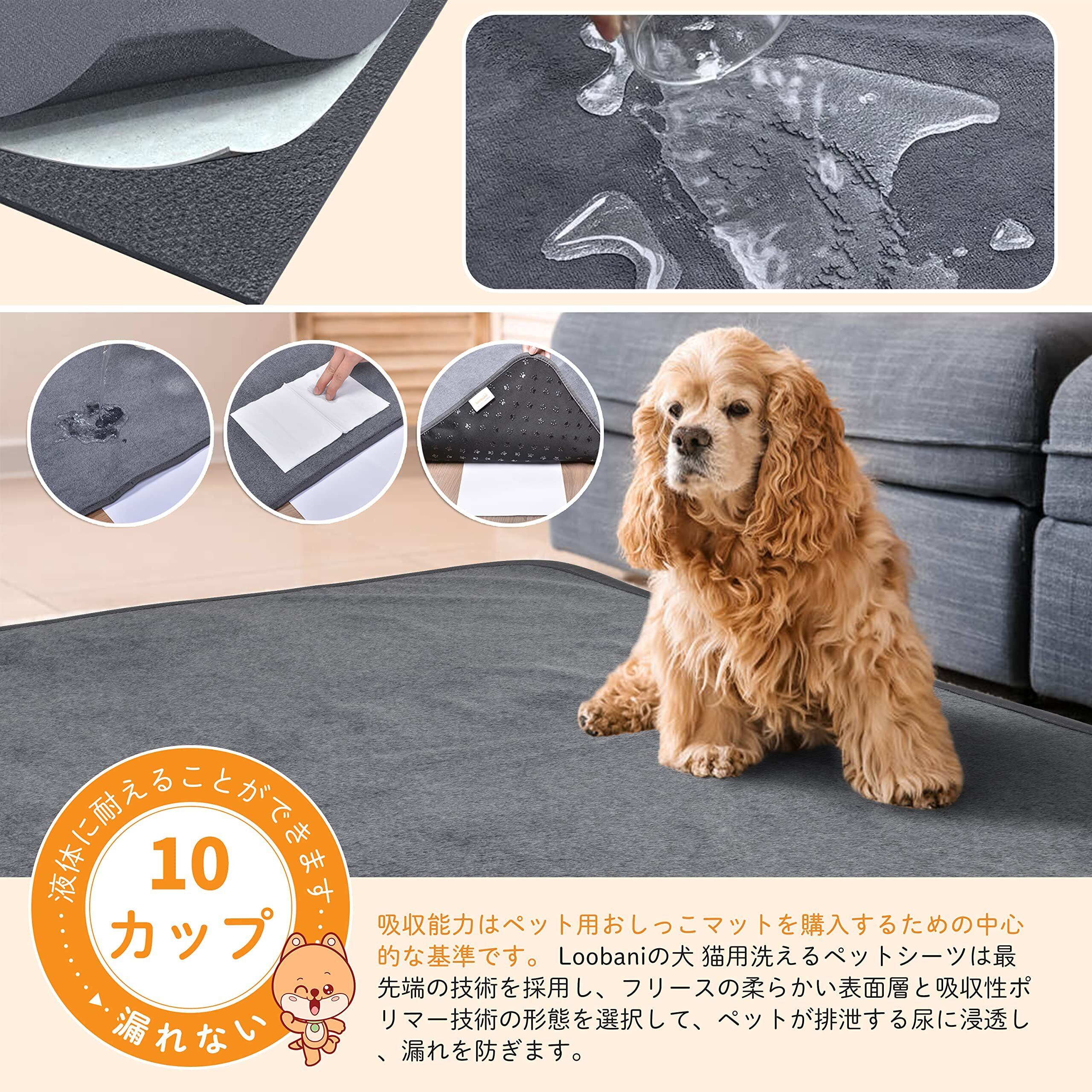 【2枚セット】犬 猫用洗えるペットシーツ 繰り返し使える犬用おしっこマット ペットマット 漏れにくさ 噛み耐性 速乾 消臭 介護 制菌 超吸収 (90*60cm, グレー)