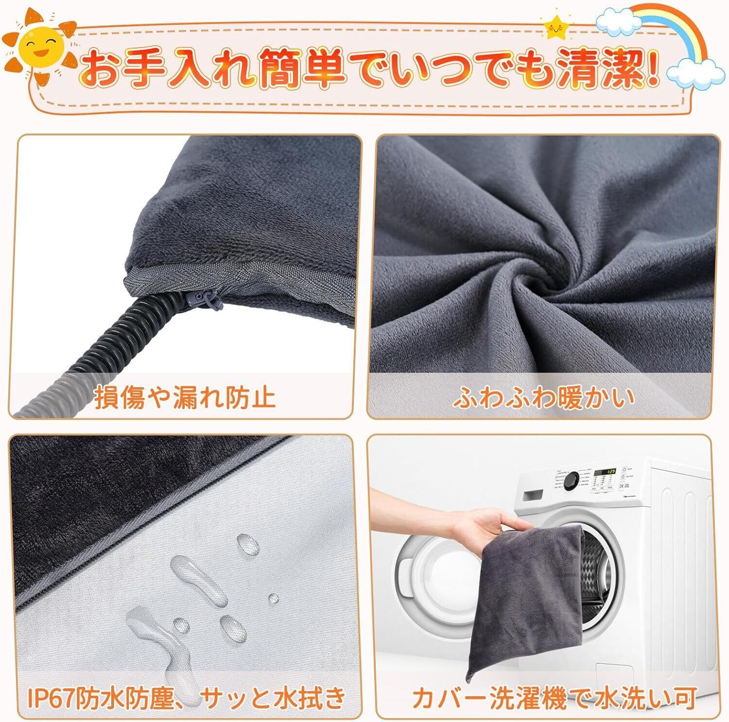 【ふわふわ生地・お手入れ簡単】カバーはフランネル生地を厳選しており、保温性バッチリ、更にふかふかな肌触りを持ち、ペットにもやさしいです。取り外し可能でいつでも洗濯機で丸洗いできますのでお手入れ簡単です。ヒーターマット本体は先進のIP67防水コーティング生地で作られています、汚れてもサッと拭き取るだけとお手入れラクラク、冬にペットベッドに入れて最適です!マット本体は防水絶縁の上に、クッション性もあるため、カバーを使わなくてもご使用できます。