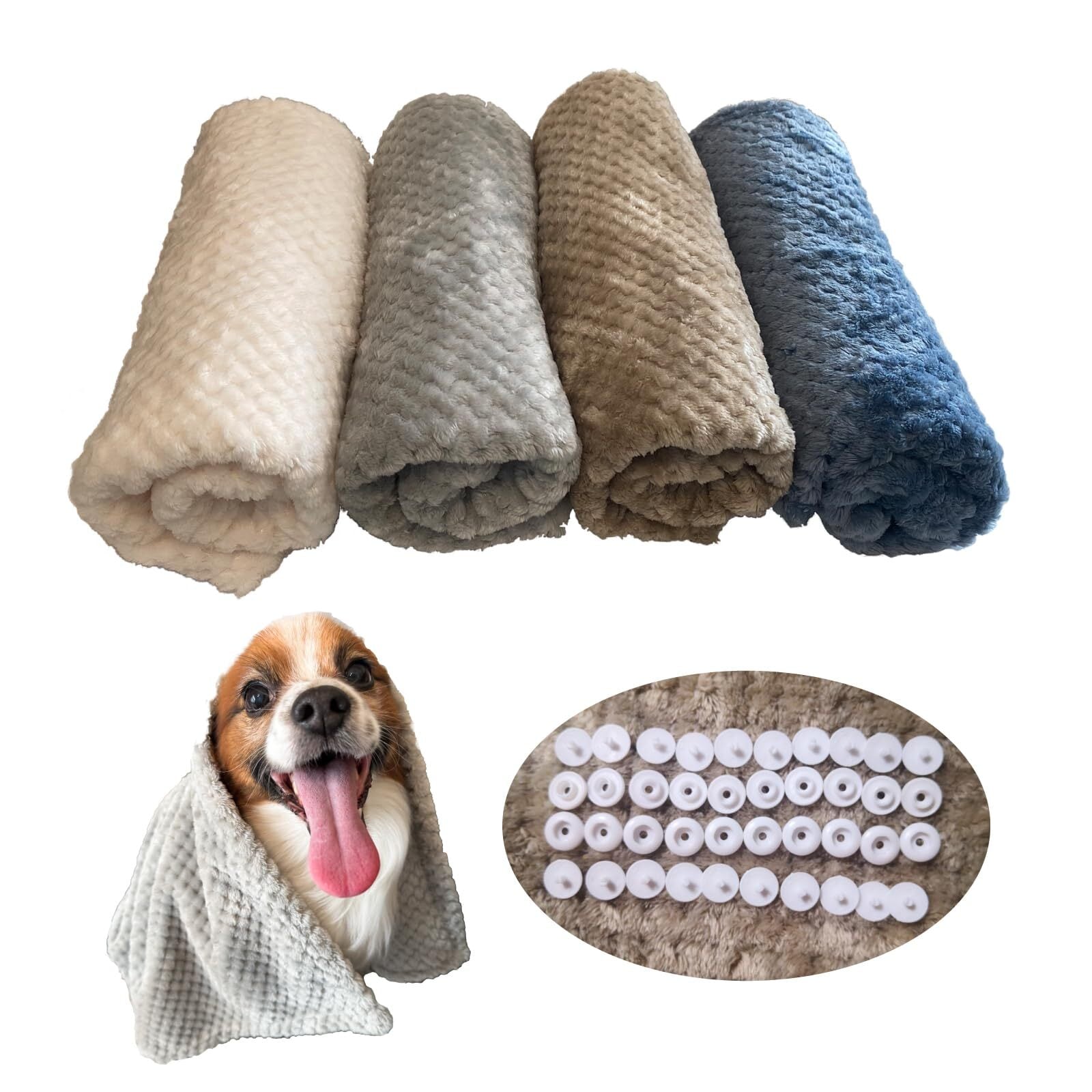 【在庫セール】ペット 毛布 ブランケット スナップボタン付 犬 猫 【王室級肌ざわり】 タオル クッション 洗えて速乾使用 繋げて使える通年使用 (4枚セット65×45㎝) | wakuwakuland