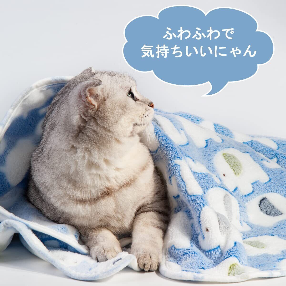 ペット用ブランケット 毛布 薄手 3枚セット 犬 猫 フェレット 小動物適用 ふわふわ 暖かい かわいいぞうさん柄 洗える 素早く乾く 一年中使用できるペット用毛布 (ぞうさん, Lサイズ(3枚入))