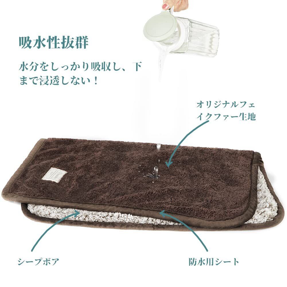 表面は特製のフェイク生地を使用、水分を素早く吸収し、汚れやペットのおしっこなどの拡散を防ぎます。毛布内部には防水コーティングが施されているので、裏には水分を通されません。ペット用オシッコマットとしてもご利用いただけます