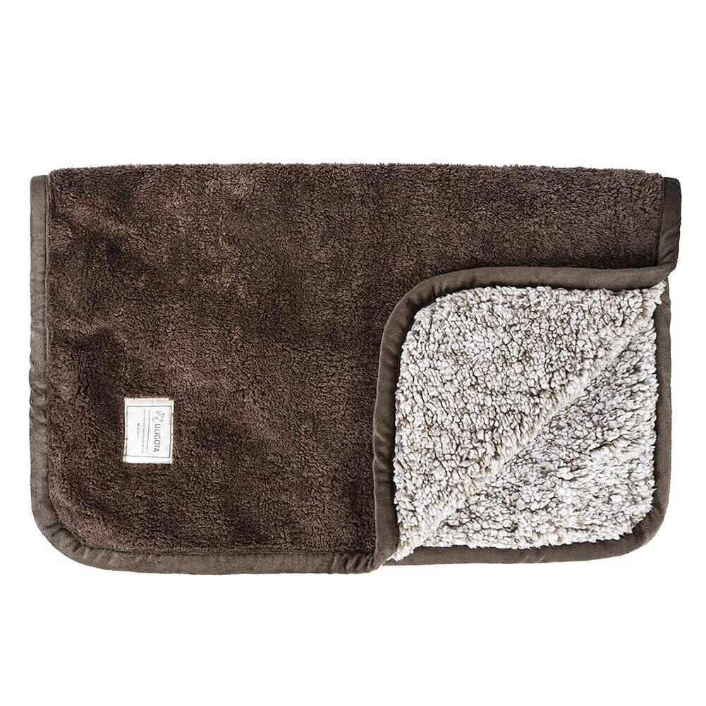 ULIGOTAのペット用ブランケットです。柔らかで高品質なポリエステル100%を使用した犬猫兼用スロー。2種類の異なる質感が楽しめるリバーシブルタイプ。片面にはオリジナルファイクファー生地、もう片面には羊毛風のシェルパ素材を使用。柔らかな肌触りでペットを暖かく快適に包んでくれる大判毛布は、寒い季節に最適です