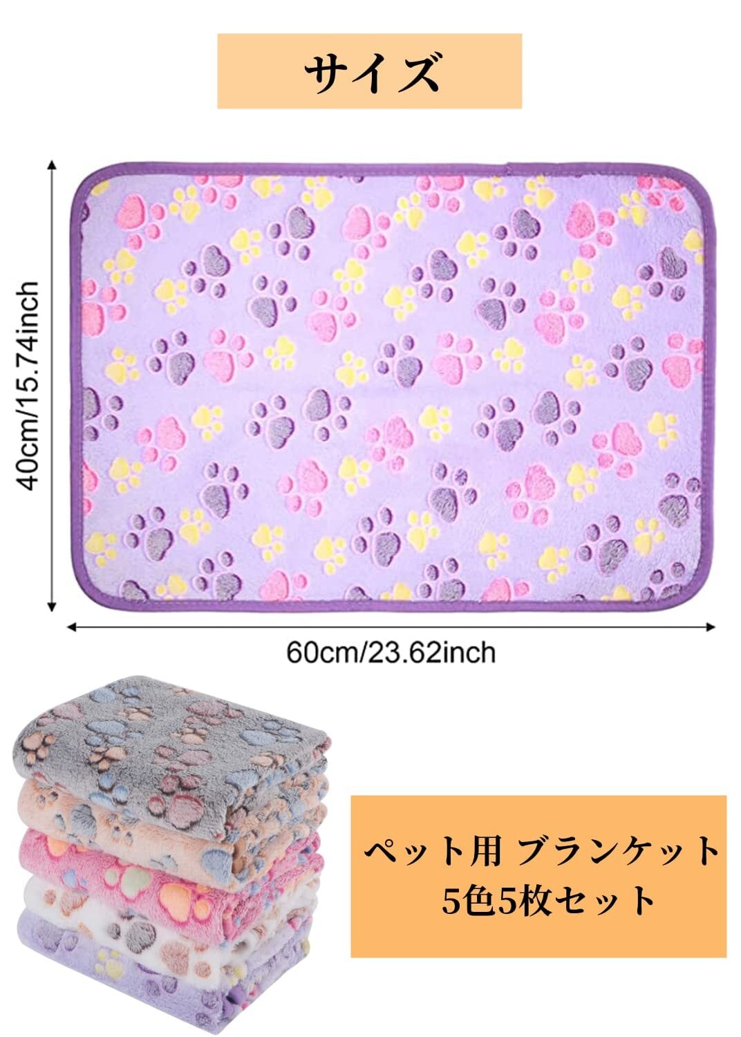 【製品仕様】5枚セット ブランケット ペット用、S:40x60cm 、可愛い猫の足跡柄です。