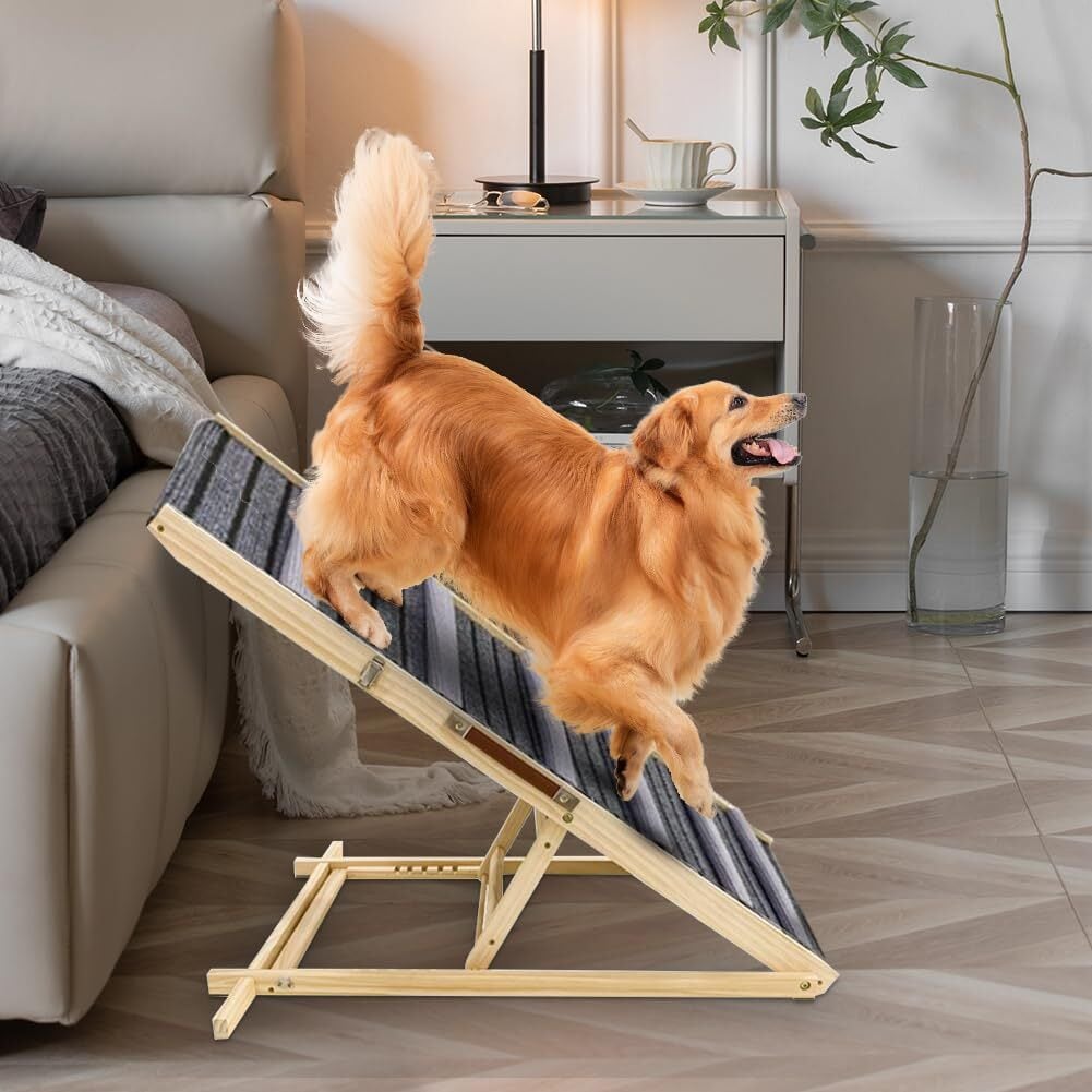 【特価商品】ペットスロープ ペットステップ MR.PAW ペット用 坂状 折り畳み 高さ調節可能 段差がない 安定 滑り止め 木製 ステップ 6段調節 耐荷重80KGまで 省スペース 持ち運びやすい 組立簡単 子犬 老犬 ペット介護用 足腰の負担を軽減 | wakuwakuland