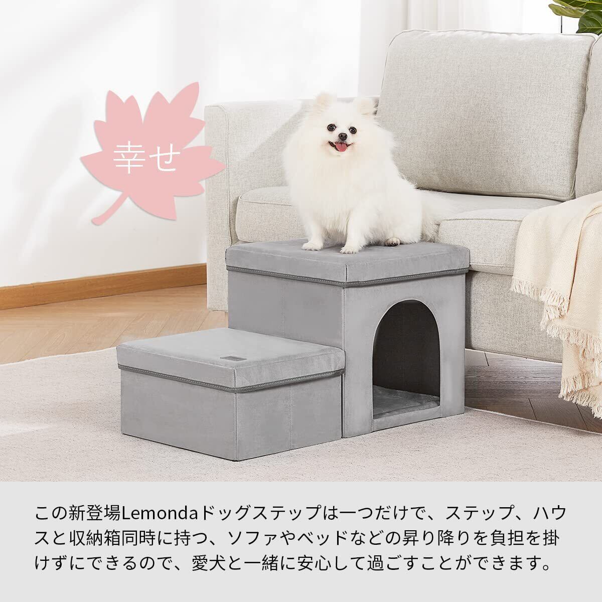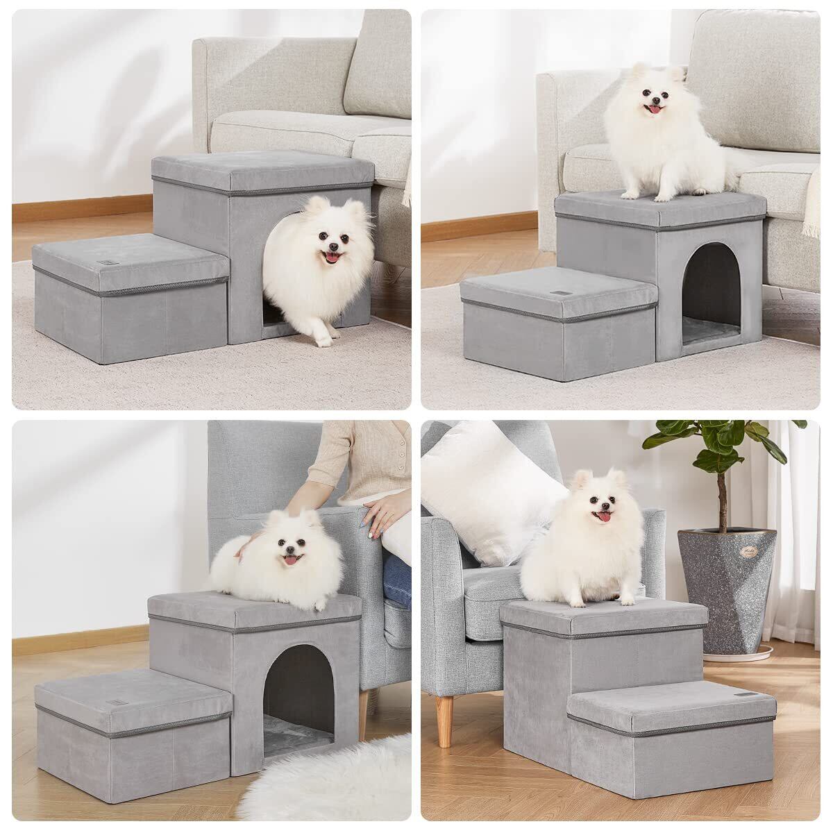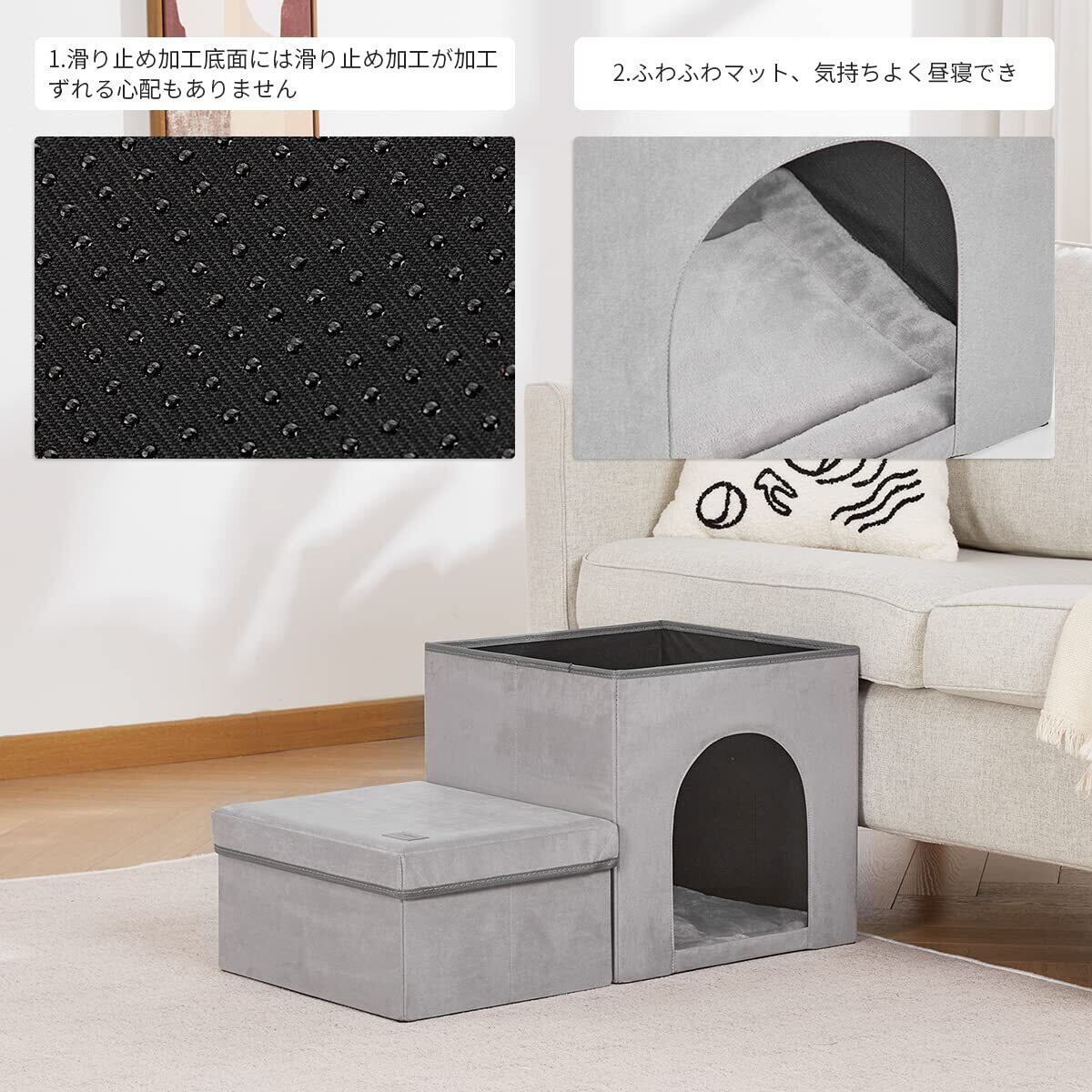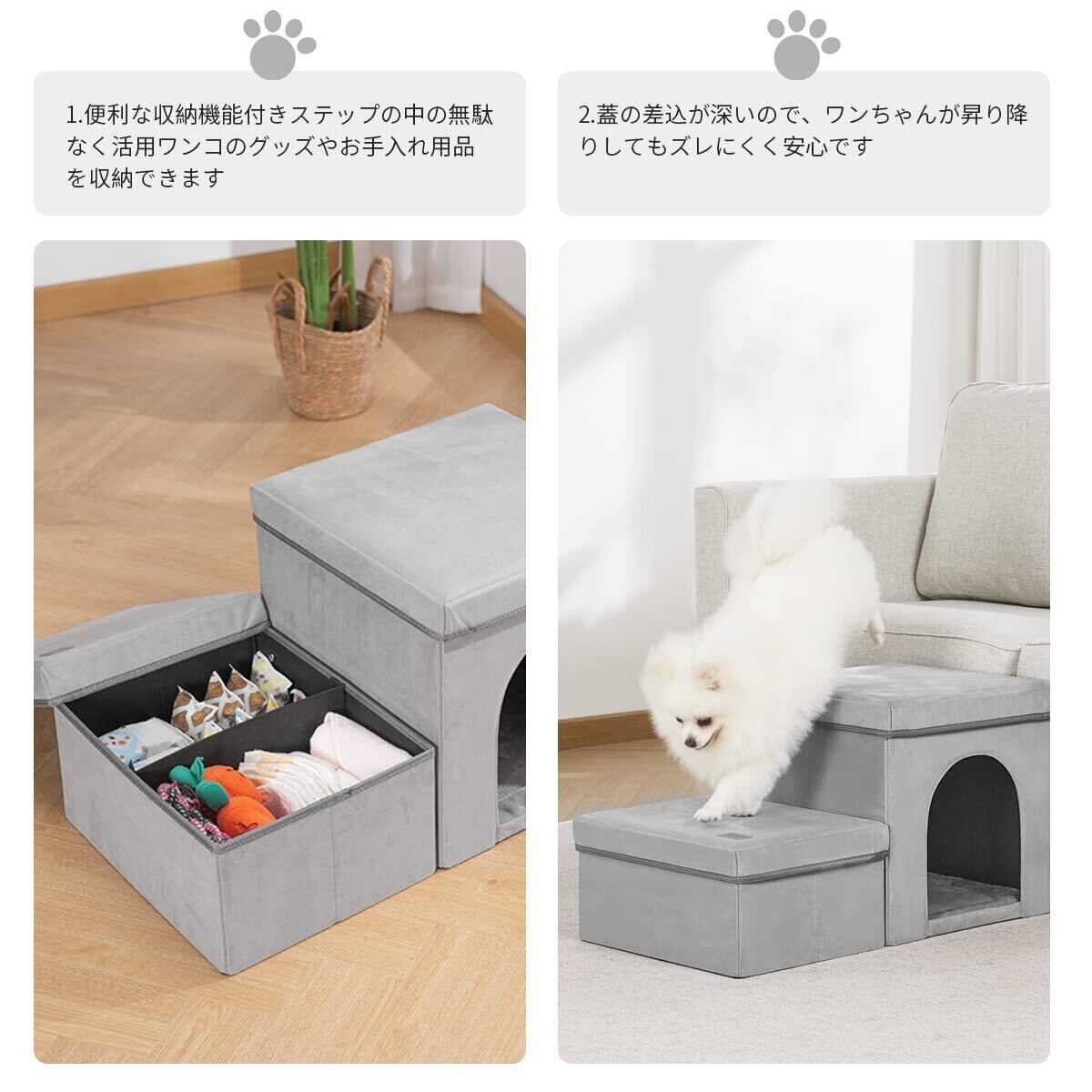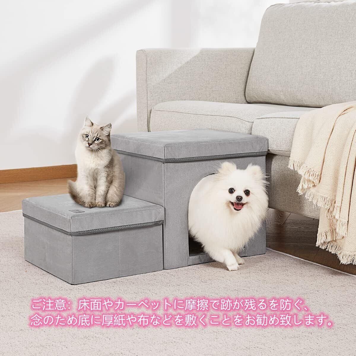 2in1ドッグステップ 猫ハウス 2段 折り畳収納型ペット用階段 高齢犬 シニア犬 スロープ 踏み台 介護用品 (灰)
