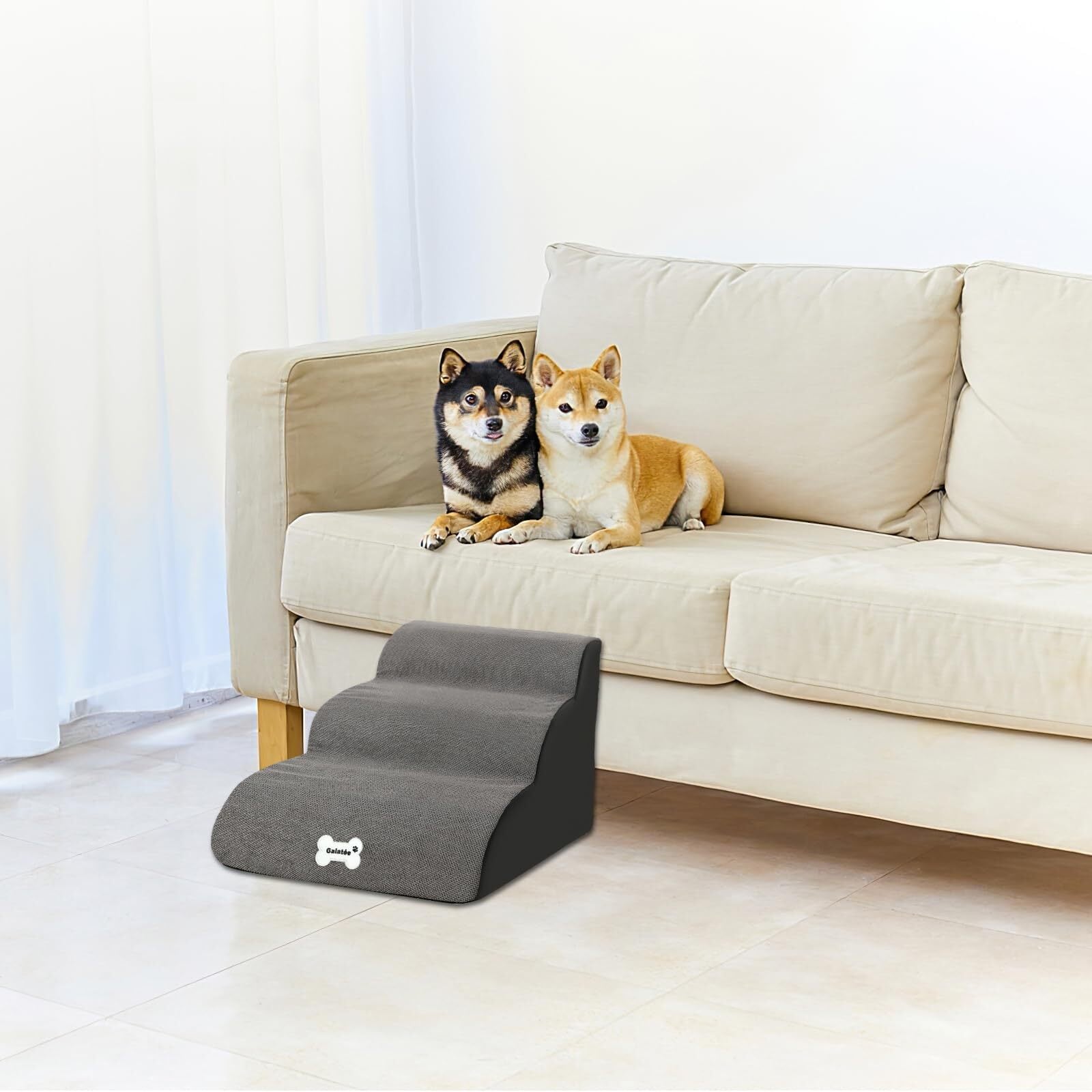 Galatée ペットの階段 洗える取り外し可能な犬の階段 ジッパー付きカバー付き犬の階段 犬用ソファベッド 高密度フォームドッグステップ(3階, ライト・ブラウン)