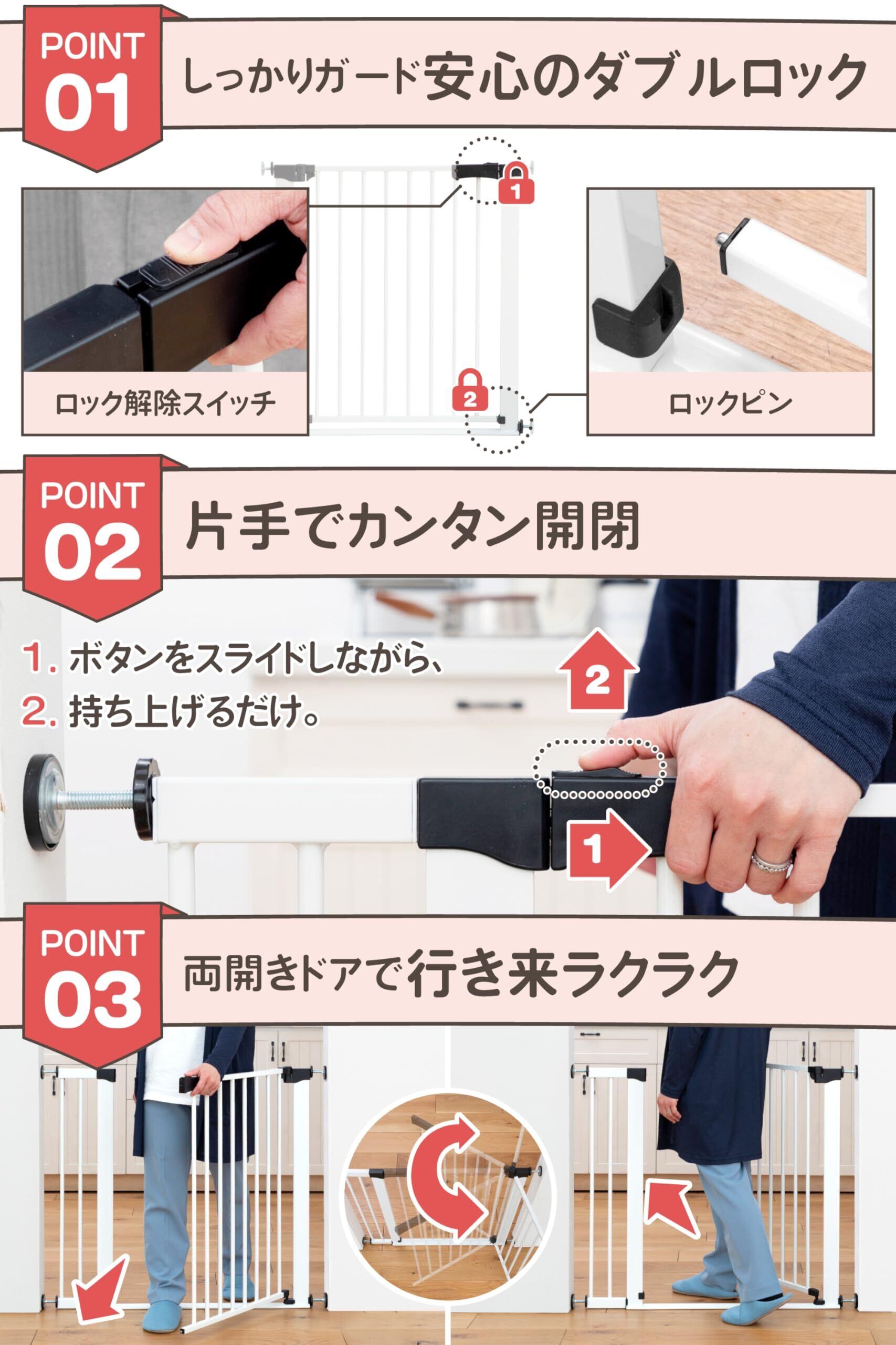 段差が少なく、つまづきにくいローステップゲイト。バリアフリーで、小さなお子さまや、高齢者、家事の最中で足元が見えない時などでも通りやすい仕様。